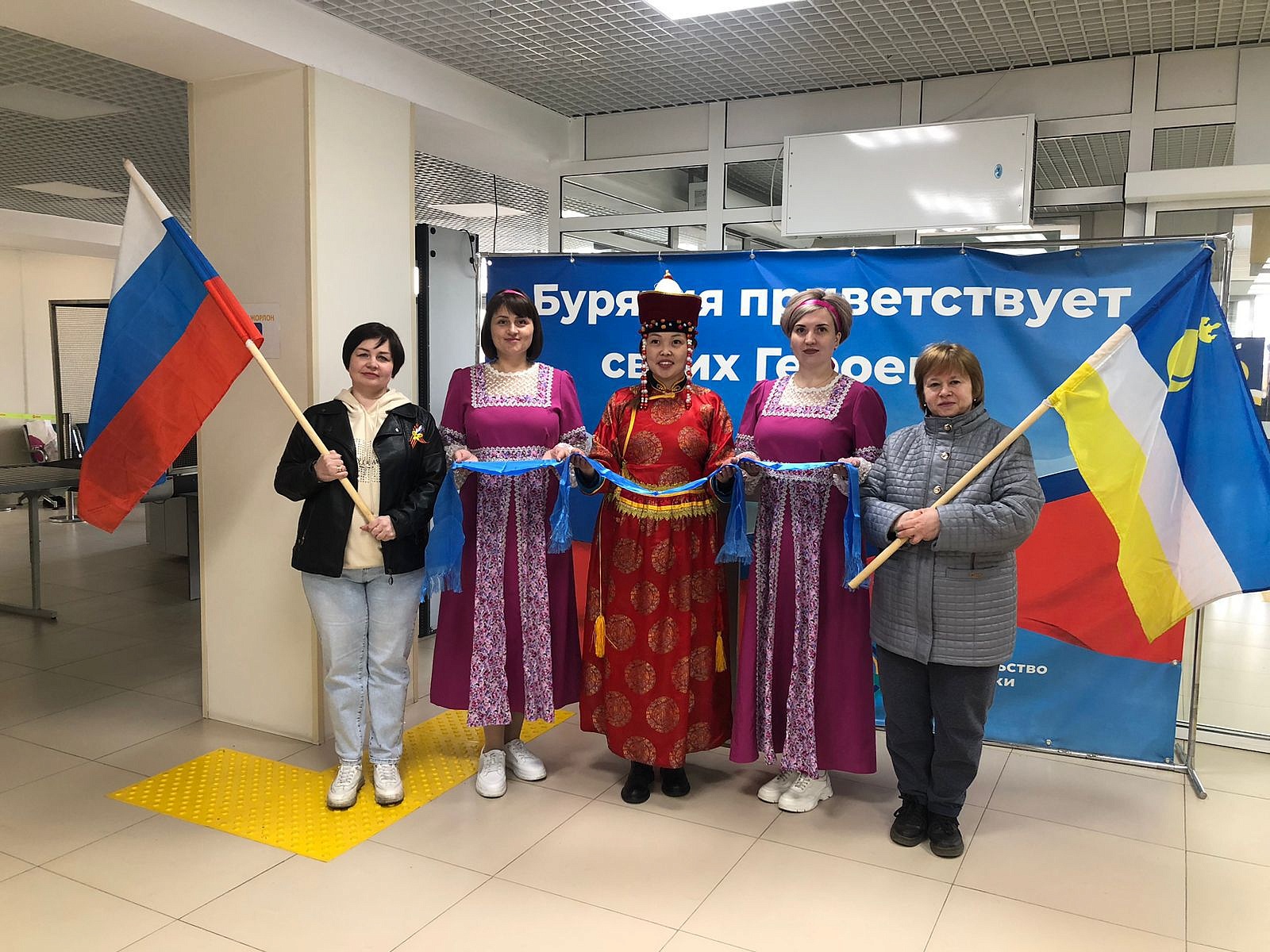 Сотрудницы Республиканского агентства лесного хозяйства в национальных костюмах, с вручением хадака, в течение недели встречали в аэропорту участников специальной военной операции.Мероприятие сопровождалось военно-патриотической музыкой. Уже во второй раз работники Агентства принимают «дежурство» по чествованию земляков, прибывших с фронта. Девушки встречали самолеты с первого рейса.