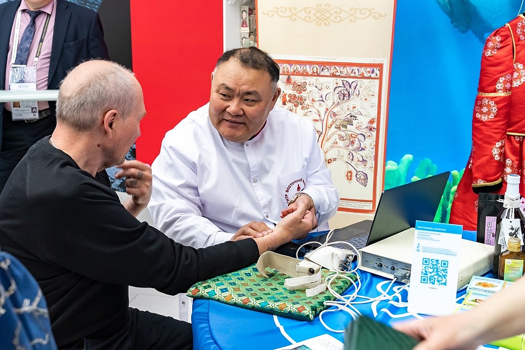 Центр восточной медицины продемонстрировал более 40 видов фитосборов в виде экстрактов и фиточаев на основе многовековой рецептуры тибетской медицины. Технологии здоровьесбережения, основанные на персонализированном подходе к питанию и рекомендациях по образу жизни. Также заместитель главного врача по клинико-экспертной работе ЦВМ Цыбикжап Туртуев провел аппаратную пульсовую диагностику гостям выставки.