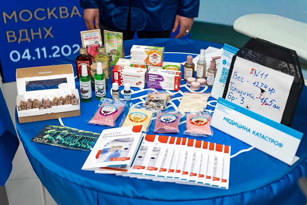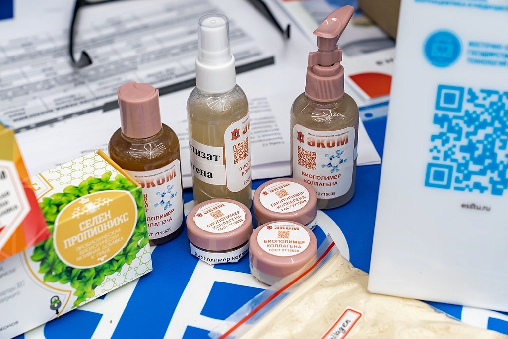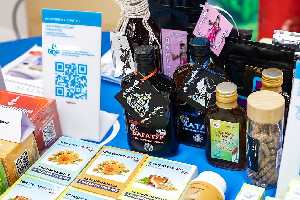 ВСГУТУ представил комплекс биологически активных добавок для активного долголетия: Йодпропионикс, Селенпропионикс, Бификардио, Пропионикс, Концентрат бифидобактерий жидкий. Объем производства более 300 тысяч флаконов в год. БГСХА и БГУ показали БАДы и косметические средства, созданные в рамках программы «Приоритет 2030».