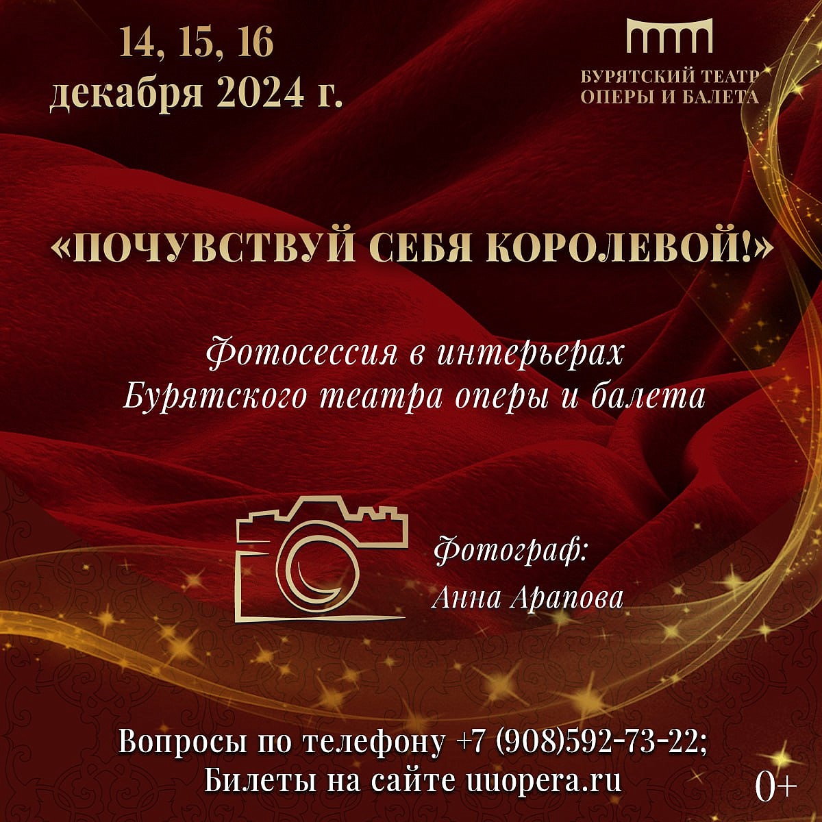 «Почувствуй себя королевой» вместе с Бурятским театром оперы и балета уже на этой неделе – 14, 15, 16 декабря. Количество мест ограничено.