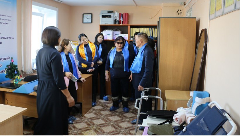 Здесь коллег из Монголии познакомили с работой «Школы ухода», пунктом выдачи технических средств реабилитации, отделения дневного пребывания, пообщались с проживающими – получателями социальных услуг.