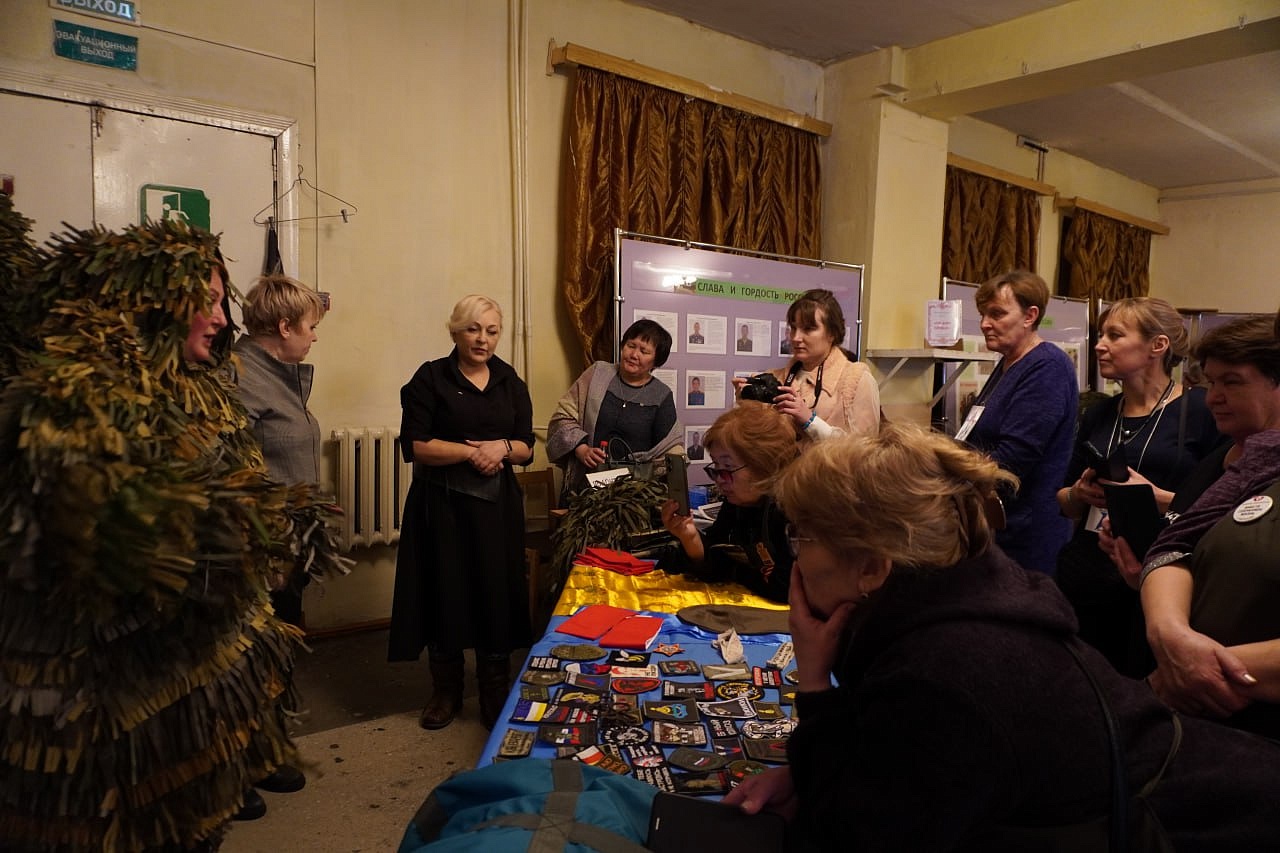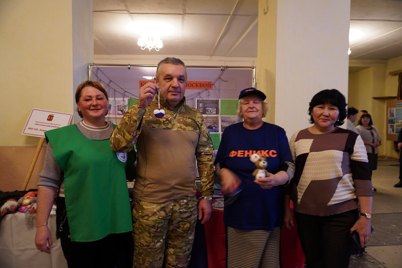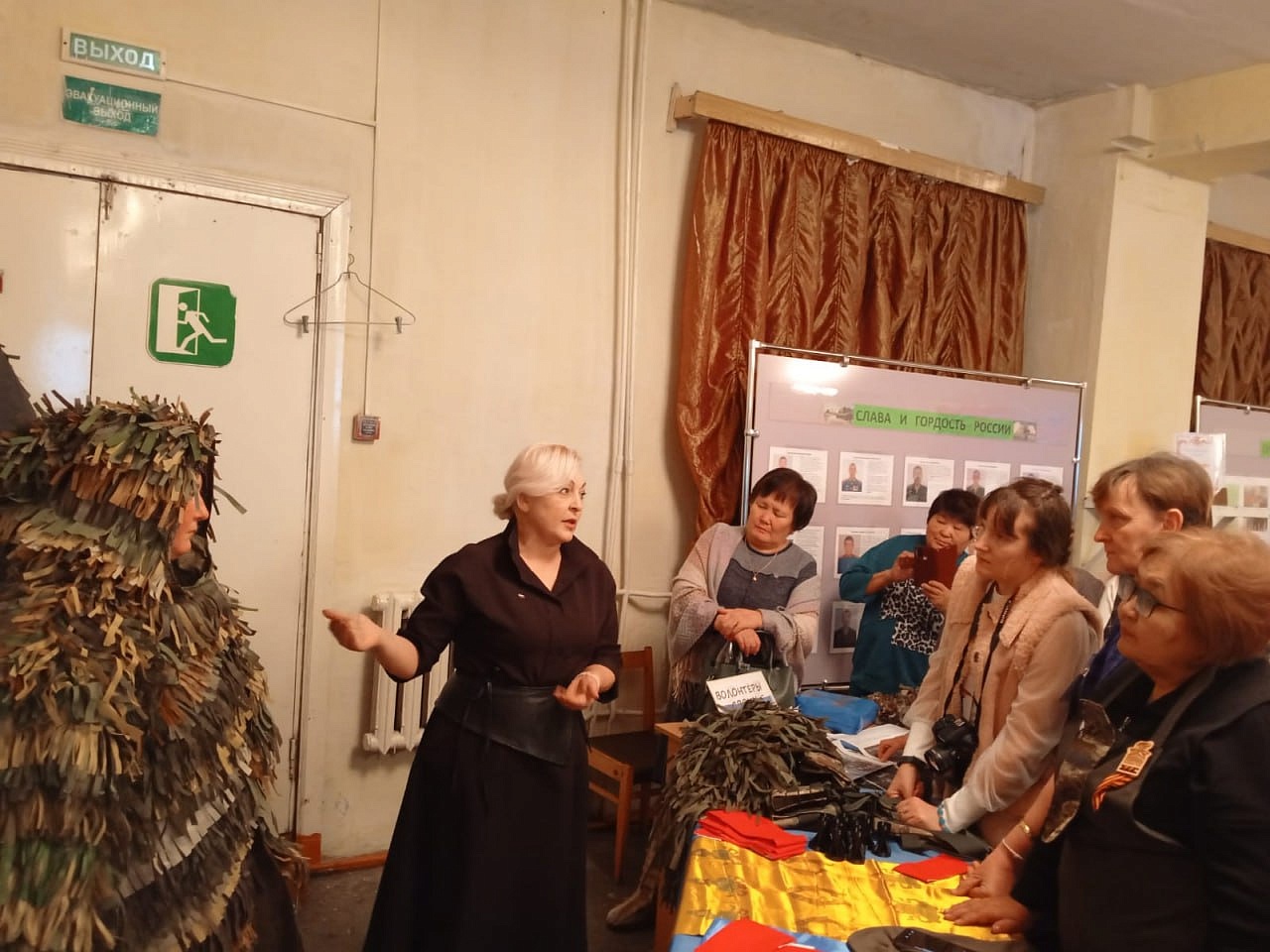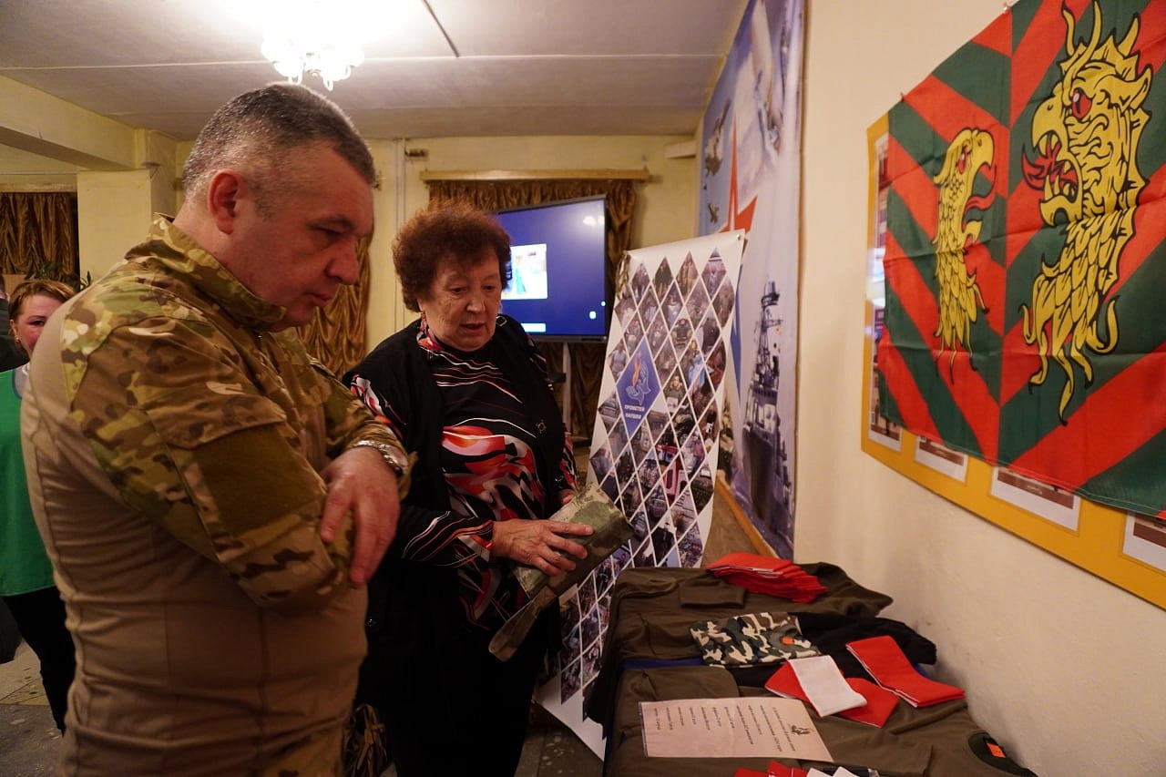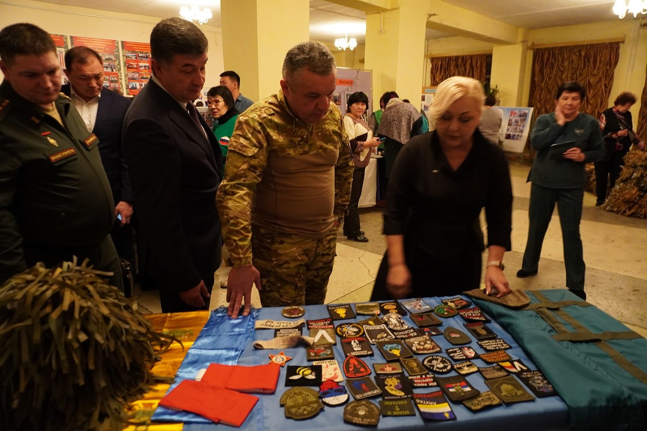 В гарнизонном Доме офицеров была развёрнута выставка «Волонтёры Кяхтинского района» штабов добровольцев Кяхты, поселений района. На столах, баннерах, стенах зала активисты представили результаты своего труда помощи нашим воинам, участникам СВО. На видеоэкране шли кадры волонтёрской деятельности. Представитель группы волонтёров рассказывал товарищу генералу о своей деятельности. Роман Борисович с заинтересованностью рассматривал фотоальбомы, вещи и сети, изготовленные женщинами, расспрашивал о достижениях. Руководитель волонтёрского движения «Прометей» Оксана Герасименко рассказала, что в поселениях работают координаторы штаба, представила их генералу.