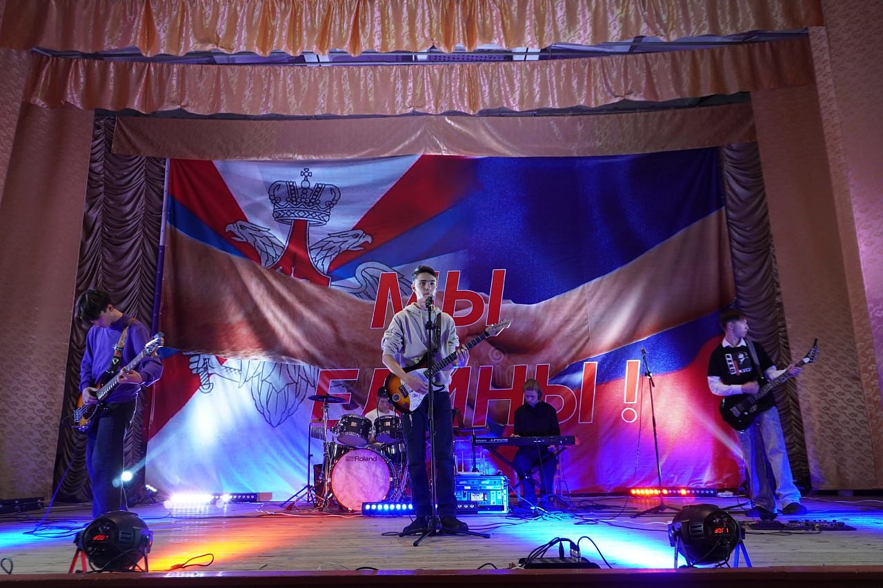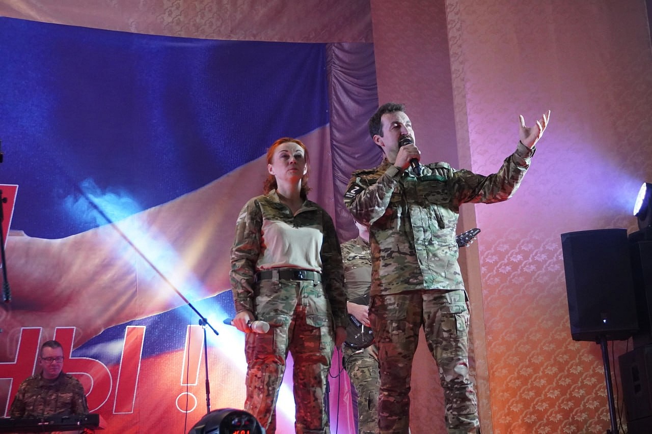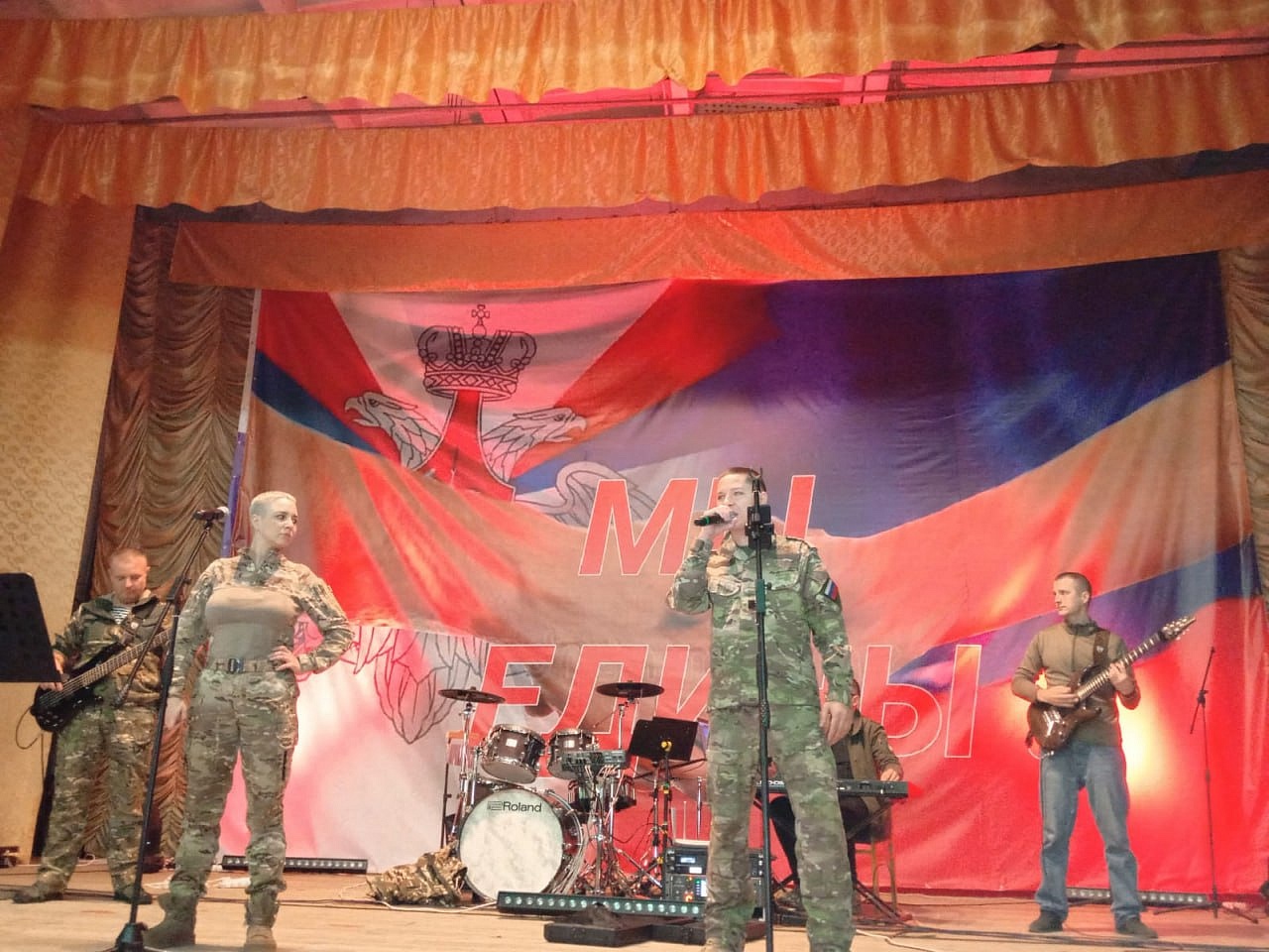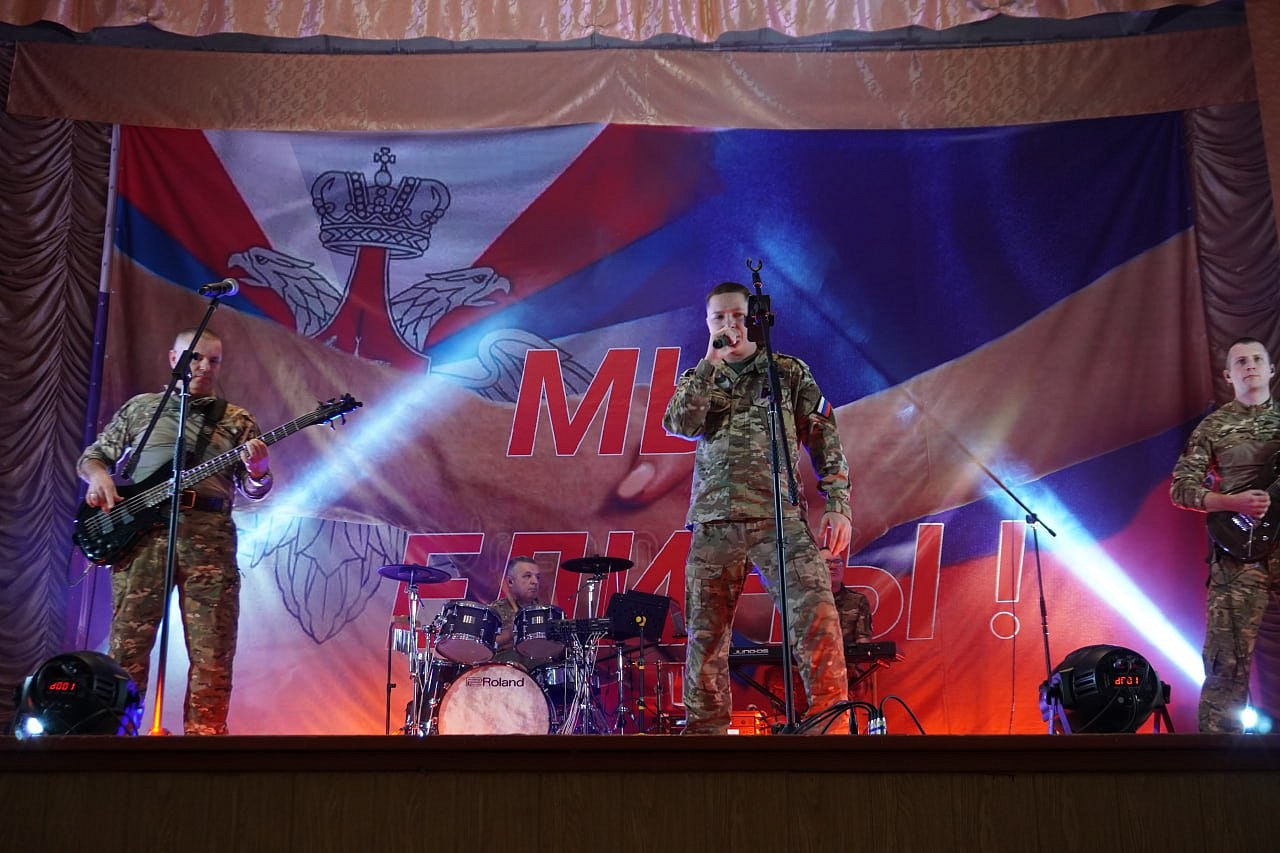 Генерал-лейтенант Роман Греков перед концертом сказал, что в его управлении есть отдел культурно-досуговой работы. На войне, как и в мирной жизни, люди должны получать тот уровень культурно-досугового обслуживания, который позволяет сохранять им веру в победу, отвлечься от будней, поэтому на территории СВО работают фронтовые бригады, представителем которой является Оксана Лушникова, ваша землячка, которая даёт со своим коллективом по 3-4 концерта в день в блиндажах для малых групп, в условиях непростых, в условиях опасных. Это одна из форм культурно-досуговой работы. К нам приезжают различные артисты по линии администрации президента Российской Федерации, министерства обороны, просто люди творческие, которых мы принимаем, мы им рады, сказал Роман Борисович. Работает в зоне СВО заслуженная артистка Российской Федерации Юлия Чичерина, проводит много благотворительных концертов, пишет песни, которые услышите. Там же работает наш коллектив. Большинство песен мы написали сами, написали музыку, стихи, аранжировку, и сами исполняем. Это авторские песни про то, как мы чувствуем войну, как мы её видим, как к ней относимся, это та правда, которую мы видели собственными глазами. И сегодня, находясь в Кяхте, состоялась встреча неожиданная с молодыми ребятами, которые рассказали, что у них есть вокально - инструментальный коллектив, что есть там и гитарист, и бас-гитарист, и барабанщик и клавишник. Мы посчитали возможным для себя и для вас сделать этот проект вместе. Мы никогда не репетировали вместе, никогда не видели друг друга на сцене, мы не знакомы с репертуаром. Но мы делаем одно большое дело, сказал руководитель команды. Он пригласил на сцену ВИА «The Last Day» Кяхтинского Центра дополнительного образования. Ребята не подвели своего директора Марину Валерьевну, которая переживательно смотрела на них из зала. Две песни группы зрители приняли аплодисментами, а песня Высоцкого вызвала крики «Браво». Ребята очень старались.