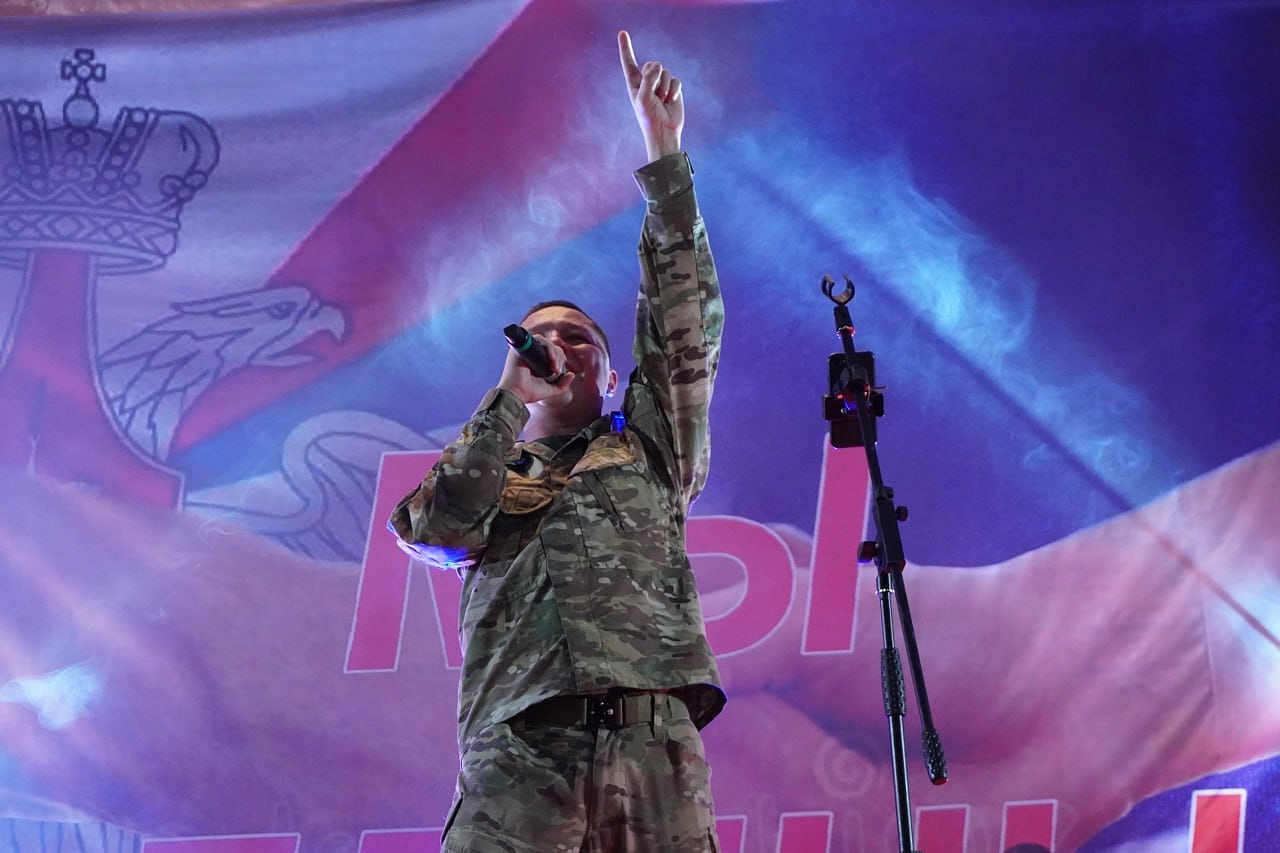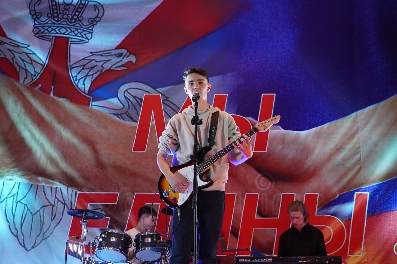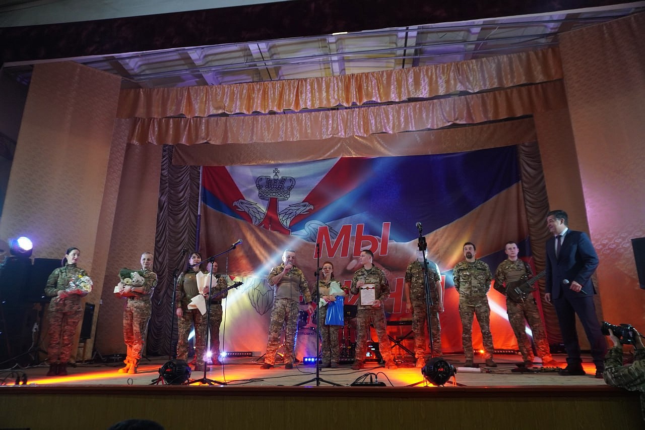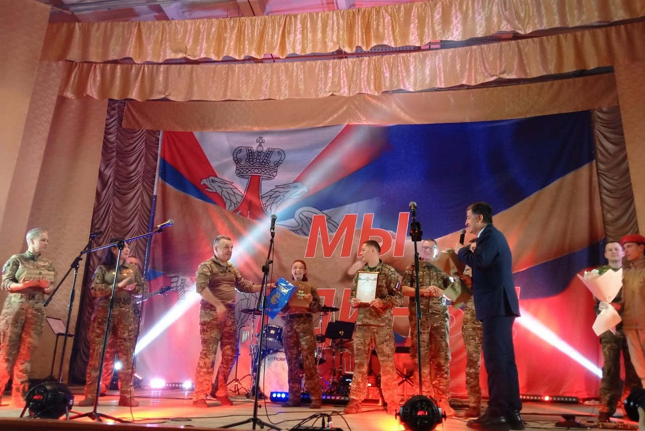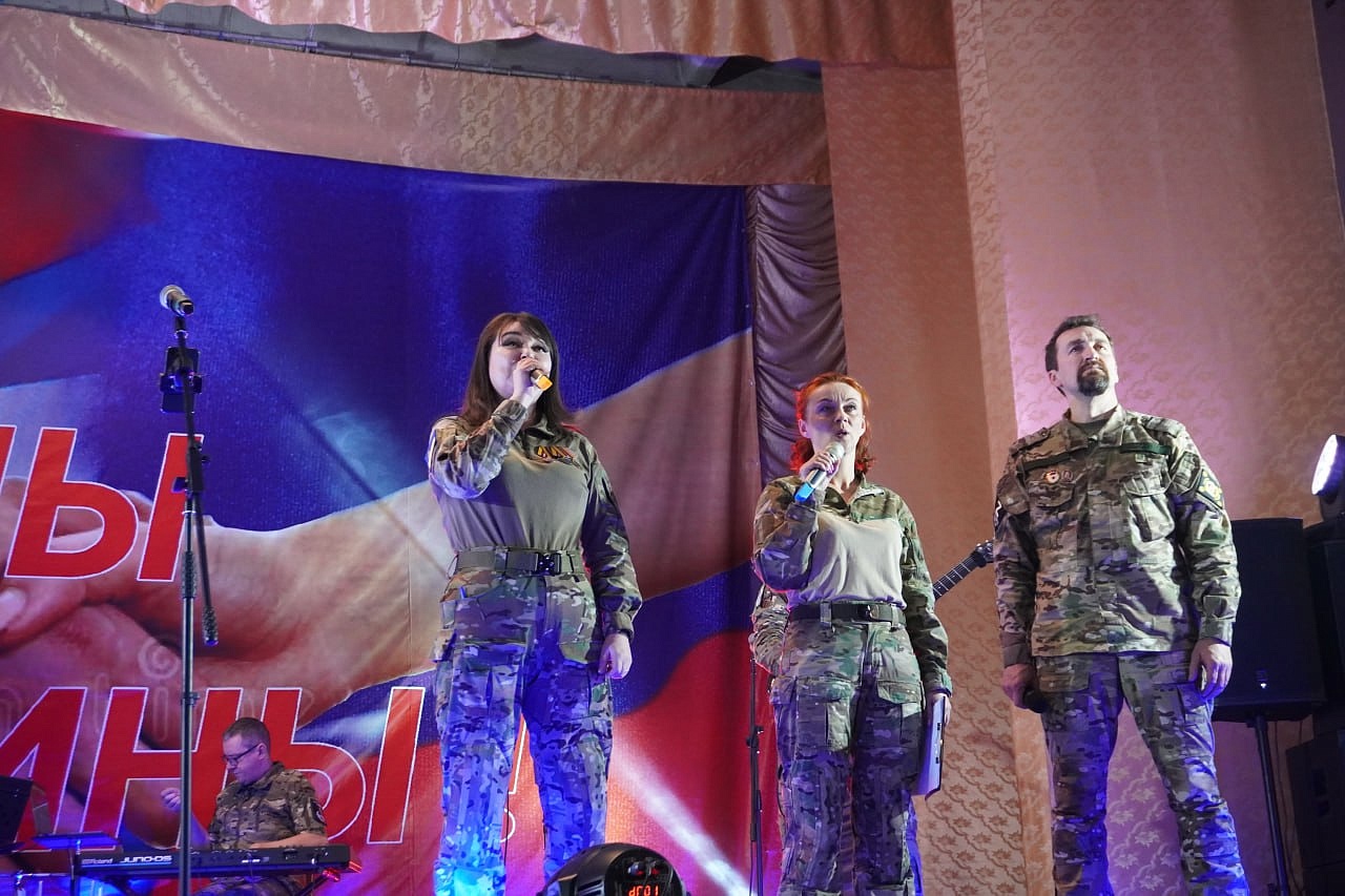 Генерал-лейтенант Роман Греков перед концертом сказал, что в его управлении есть отдел культурно-досуговой работы. На войне, как и в мирной жизни, люди должны получать тот уровень культурно-досугового обслуживания, который позволяет сохранять им веру в победу, отвлечься от будней, поэтому на территории СВО работают фронтовые бригады, представителем которой является Оксана Лушникова, ваша землячка, которая даёт со своим коллективом по 3-4 концерта в день в блиндажах для малых групп, в условиях непростых, в условиях опасных. Это одна из форм культурно-досуговой работы. К нам приезжают различные артисты по линии администрации президента Российской Федерации, министерства обороны, просто люди творческие, которых мы принимаем, мы им рады, сказал Роман Борисович. Работает в зоне СВО заслуженная артистка Российской Федерации Юлия Чичерина, проводит много благотворительных концертов, пишет песни, которые услышите. Там же работает наш коллектив. Большинство песен мы написали сами, написали музыку, стихи, аранжировку, и сами исполняем. Это авторские песни про то, как мы чувствуем войну, как мы её видим, как к ней относимся, это та правда, которую мы видели собственными глазами. И сегодня, находясь в Кяхте, состоялась встреча неожиданная с молодыми ребятами, которые рассказали, что у них есть вокально - инструментальный коллектив, что есть там и гитарист, и бас-гитарист, и барабанщик и клавишник. Мы посчитали возможным для себя и для вас сделать этот проект вместе. Мы никогда не репетировали вместе, никогда не видели друг друга на сцене, мы не знакомы с репертуаром. Но мы делаем одно большое дело, сказал руководитель команды. Он пригласил на сцену ВИА «The Last Day» Кяхтинского Центра дополнительного образования. Ребята не подвели своего директора Марину Валерьевну, которая переживательно смотрела на них из зала. Две песни группы зрители приняли аплодисментами, а песня Высоцкого вызвала крики «Браво». Ребята очень старались.