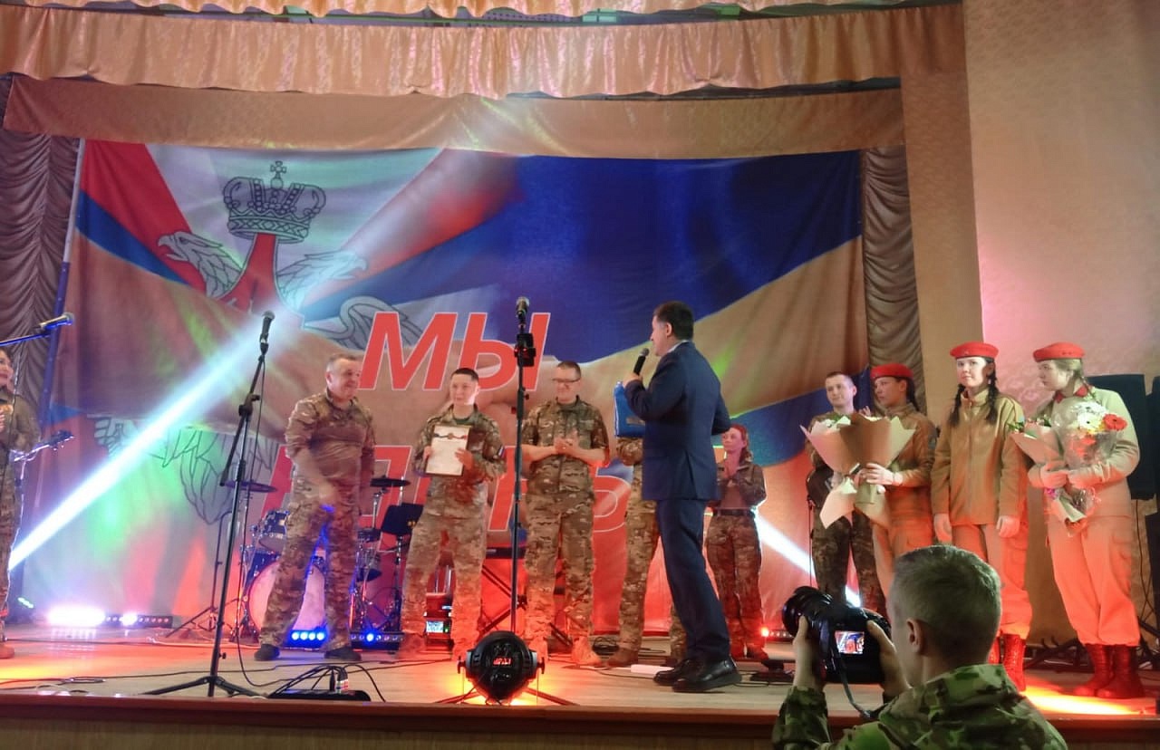 По обеим сторонам зрительного зала стояли юнармейцы с флагами России, на мероприятии присутствовали кадеты кадетского клуба «Патриот» из Наушек во главе с руководителем Олегом Ивановичем Кузьминым. Все, кто был на этом патриотическом мероприятии, очень хорошо понимают, что поддержка наших воинов и защитников - это долг каждого! «Мы идём дорогами солдата за мир, за независимость страны!». Только вместе мы сможем сделать мир лучше и добрее.