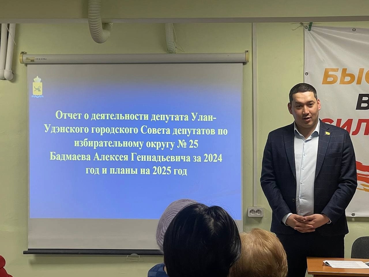 Заместитель председателя Комитета по градостроительной политике, строительству и землепользованию Улан-Удэнского городского Совета Алексей Бадмаев отчитался о проделанной работе на округе № 25. Встреча с жителями состоялась 12 марта. Отметим, депутатом городского совета он стал в сентябре 2024 года, но за эти полгода выполнен целый перечень мероприятий.