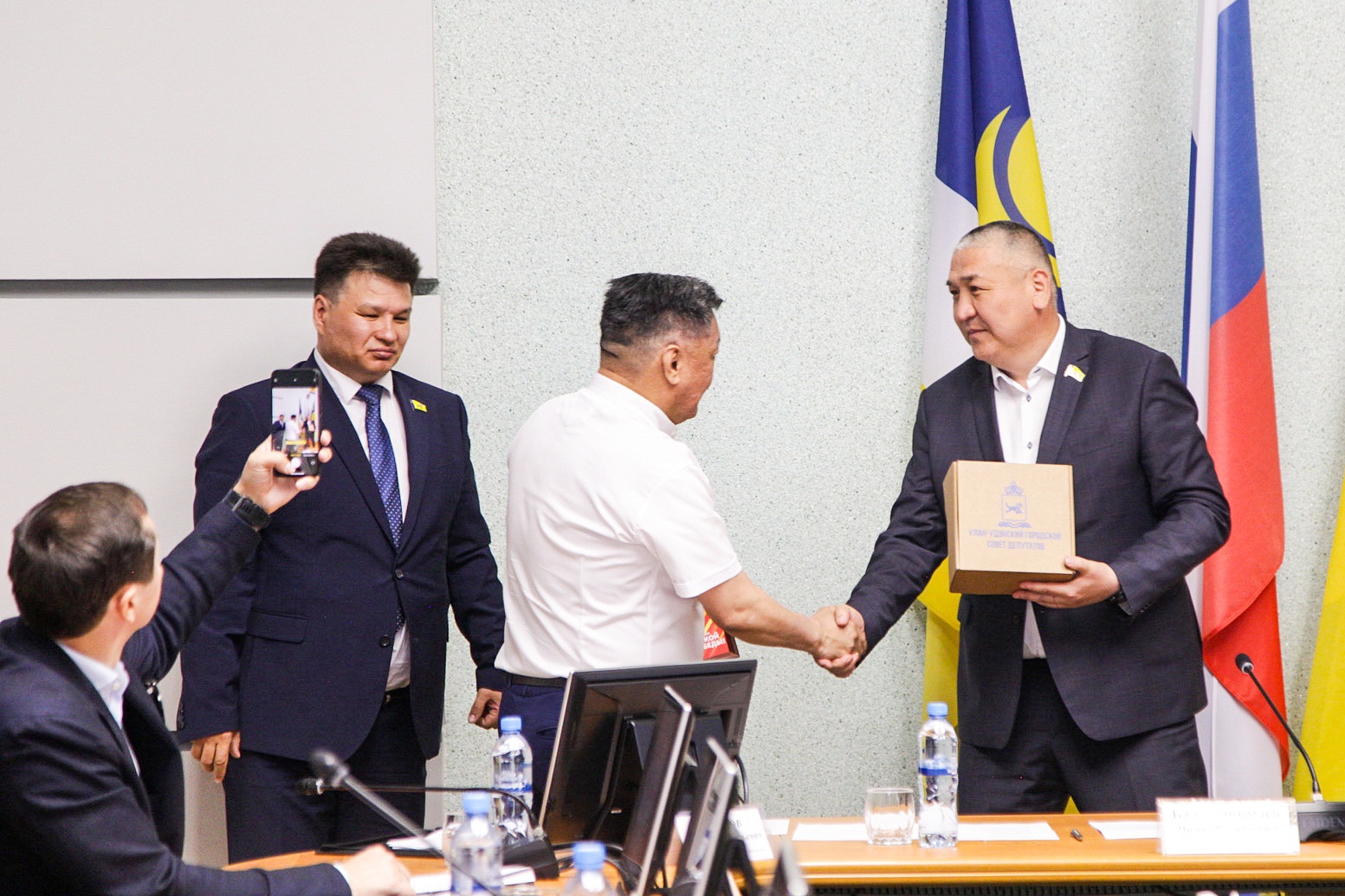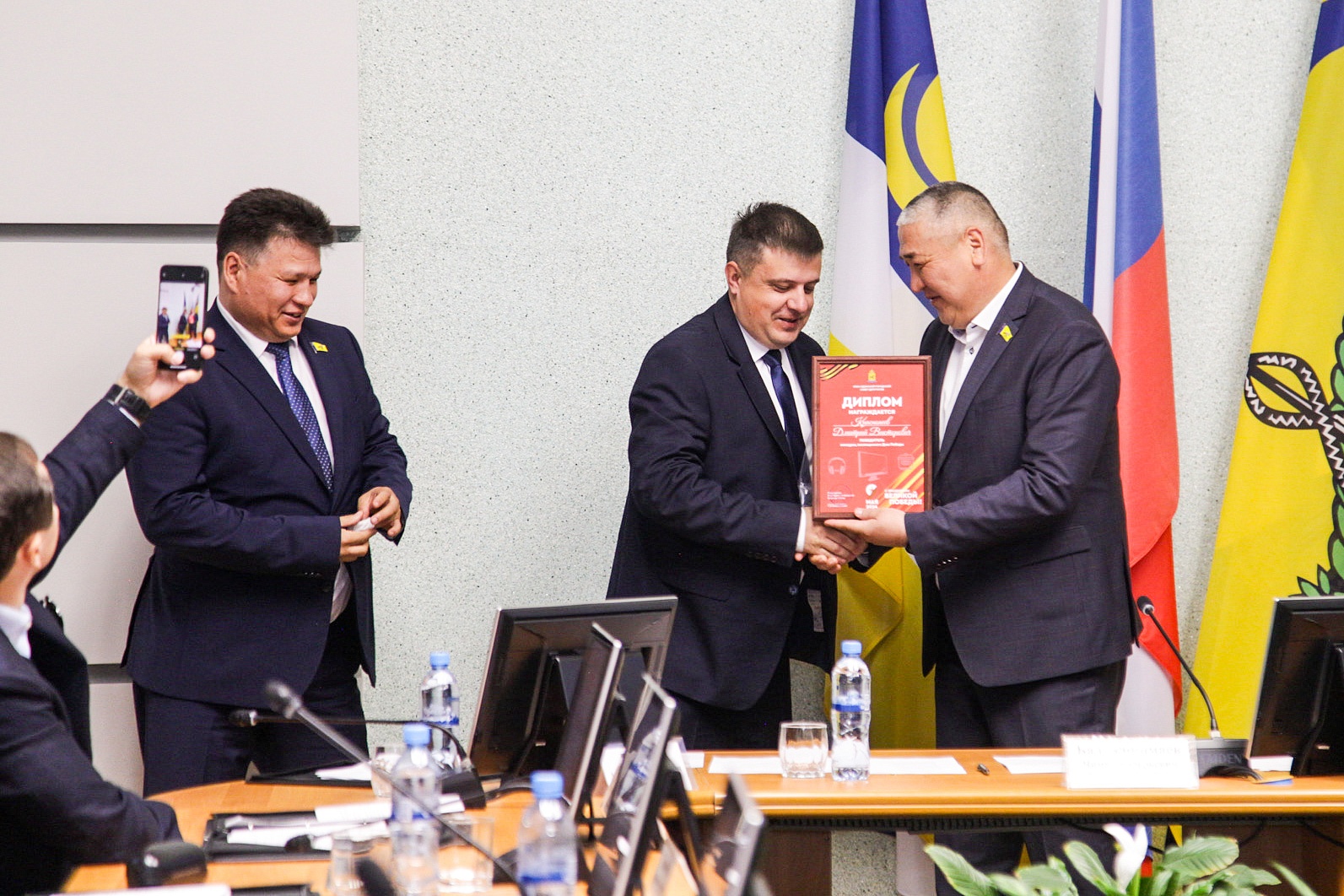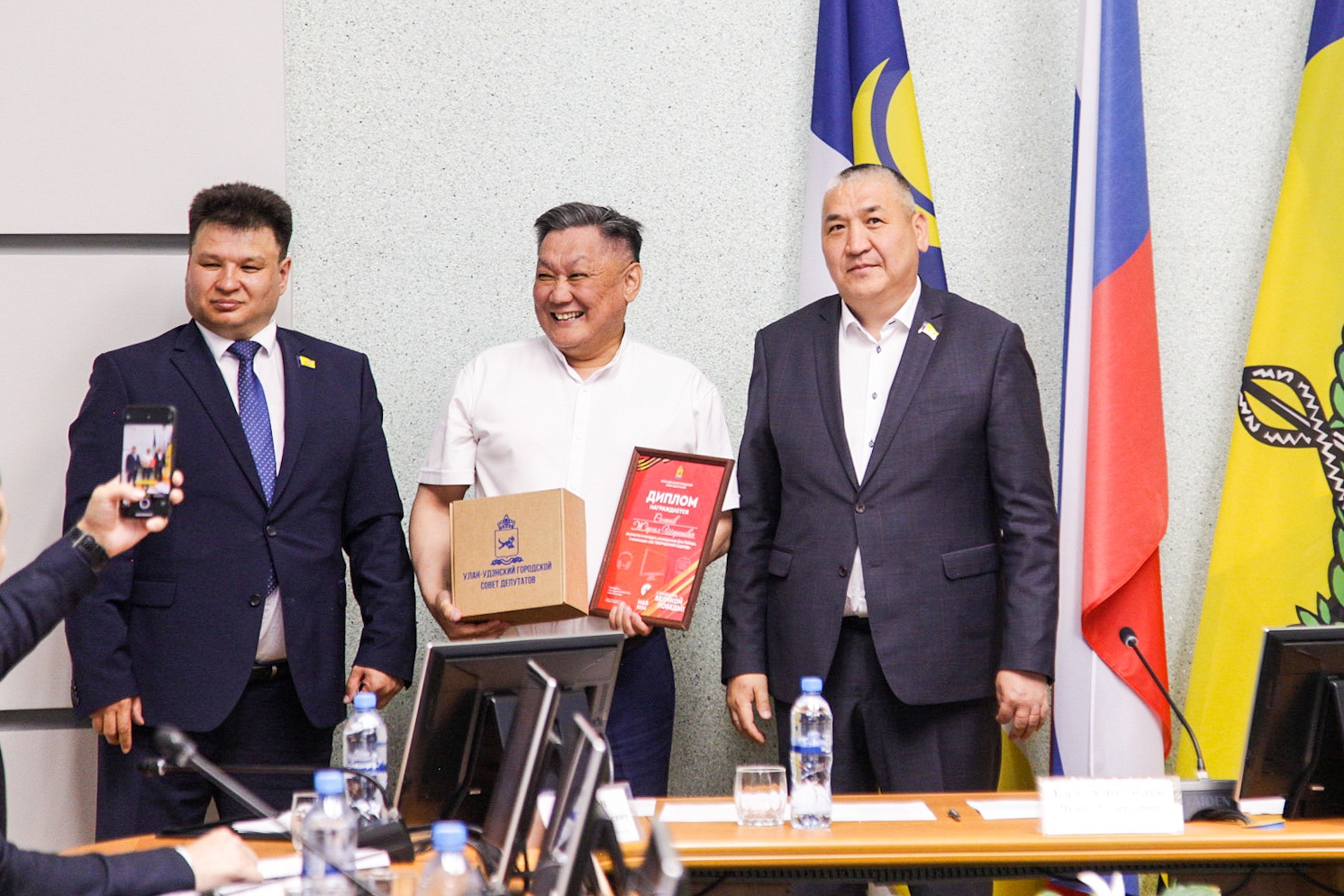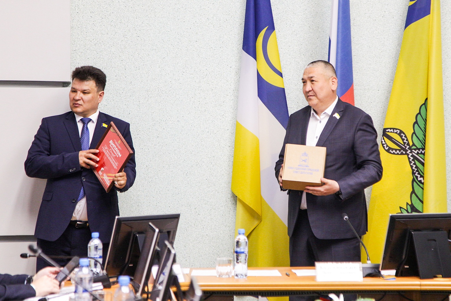 Награждение провели председатель Улан-Удэнского городского Совета Чимит Бальжинимаев и заместитель председателя Анатолий Белоусов.