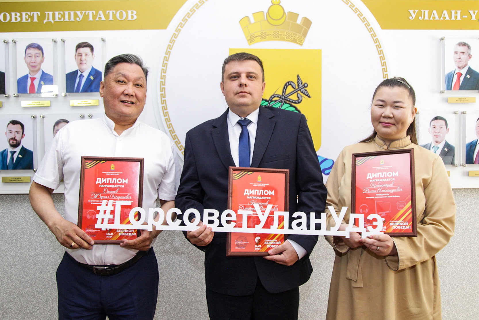 Сегодня в Улан-Удэнском городском Совете депутатов состоялась торжественная церемония награждения победителей конкурса, посвященного 79-й годовщине Победы в Великой Отечественной войне, который проводился в телеграм-канале «Горсовет Улан-Удэ».