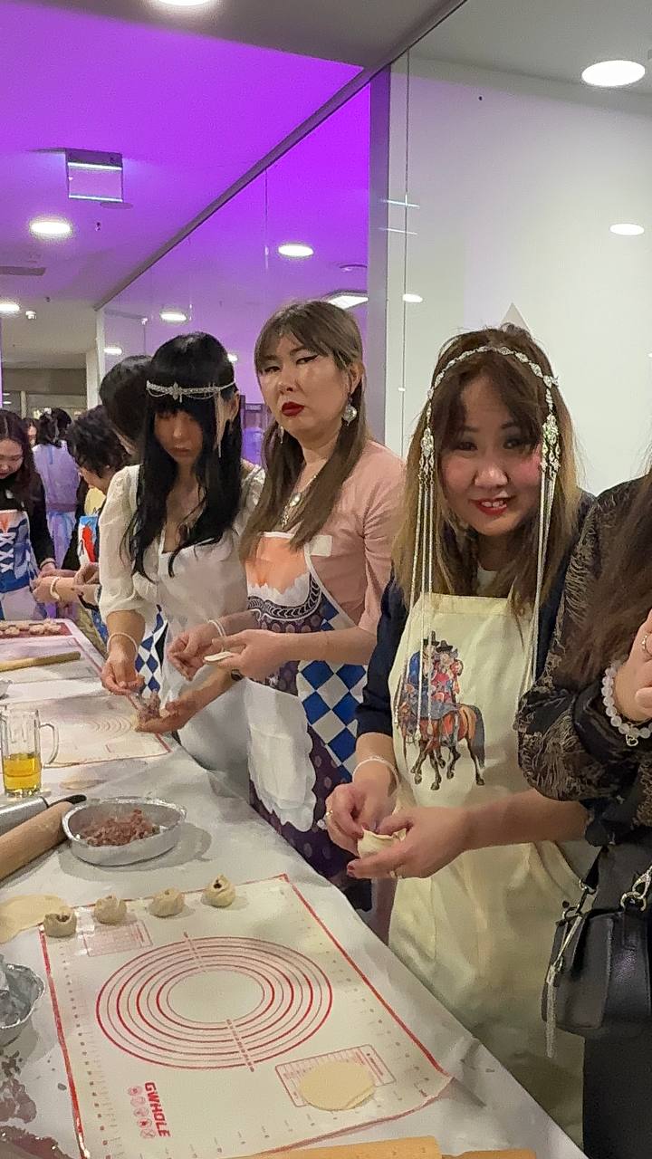 Одной из самых тёплых частей праздника стало совместное приготовление бууз. Гости вместе лепили традиционное бурятское блюдо, вспоминая домашние традиции и делясь рецептами — как это часто происходит на родине во время семейных праздников.