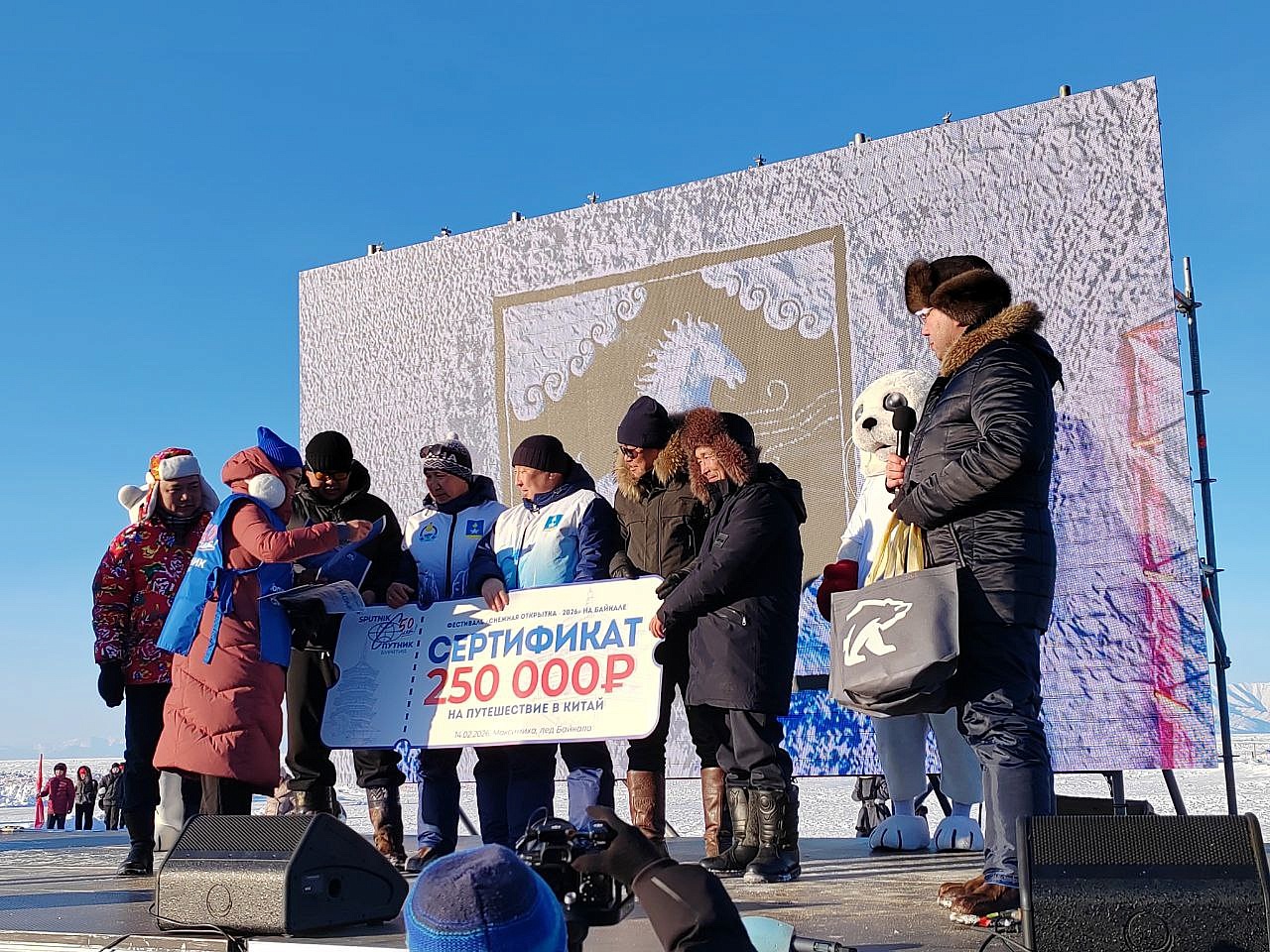 Команда - победитель получила сертификат на 250 тыс рублей. Подводя итоги мероприятия, Глава Бурятия Алексей Цыденов пообещал, что в следующем году на льду Байкала появится не 50, а 300 открыток.
