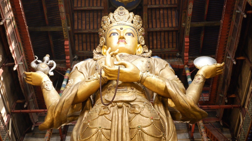 Еще одной визитной карточкой является буддийский монастырь «Гандан», который расположен в центре исторического района Ганданский холм. С 1944 по 1990 год был единственным действующим местом отправления буддийского культа в социалистической Монголии. В монастыре находится знаменитая 26-метровая статуя бодхисаттвы Авалокитешвары — «Мэгжид Жанрайсэг».