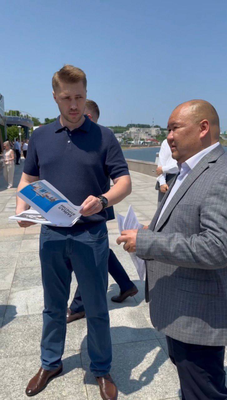 «Обсудили с Денисом Викторовичем наполнение и сроки подготовки павильона. Договорились, что до 25 июля будут завершены общестроительные работы, а а полная готовность павильона, включая настройку всех технических систем, экранов и звукового оборудования будет завершена до 25 августа», - сообщил Денис Гармаев в своем тг-канале.