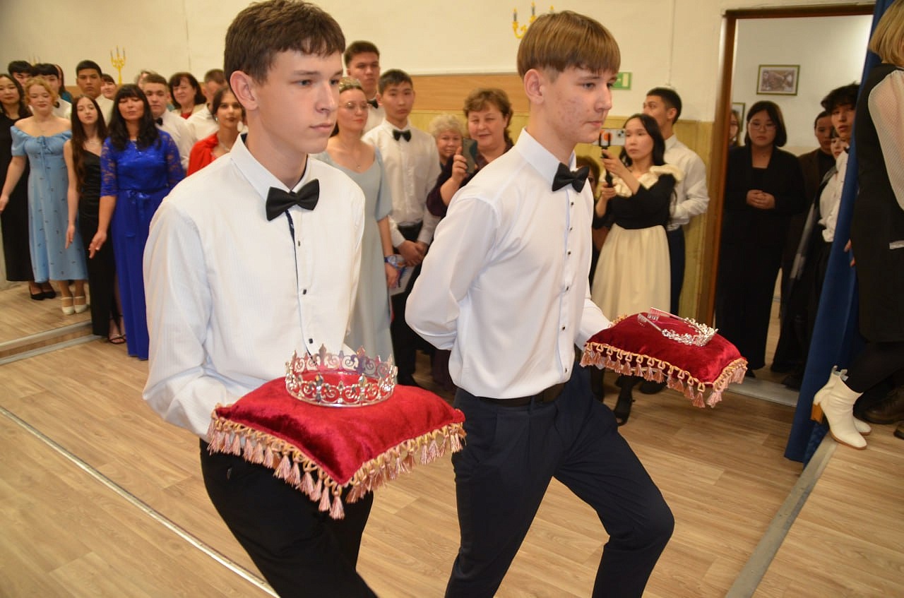 Председатель жюри начальник управления культуры Кяхтинского района Юлия Изосимова поздравила студентов со знаменательным событием, первым студенческим балом, сказала, что студенческая пора - это лучшая пора, которую вы запомните на всю жизнь. «Дамы и господа!» - объявила она торжественно и начала церемонию награждения. Всем участникам были вручены сертификаты участников. К ним руководитель учебного заведения и преподаватели приготовили подарок - сюрприз - успешный зачёт дифференцированного предмета по выбору студента. И настал волнительный момент объявления короля и королевы бала. Все замерли в ожидании. В зал вносятся красивые короны, достойные короля и королевы. Под бурные и одобрительные аплодисменты объявляется пара победителей, королём становится юноша в чёрном костюме, белой рубашке и в перчатках Жамбал Жапов, королевой объявляется его партнёрша в красном красивом длинном платье с прозрачным шарфом Татьяна Ковалёва. Короны водружены на головы победителей. Король и королева проходят почётный круг перед участниками бала. Все вместе фотографируются. Распорядитель бала приглашает всех на продолжение праздника - танцевальный вечер, где править балом будут король Жамбал Жапов и королева Татьяна Ковалёва.