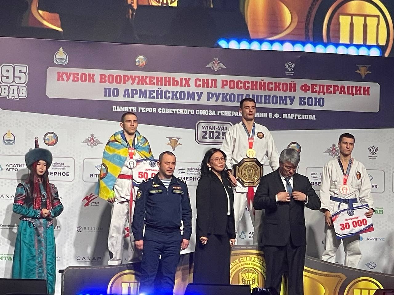 - Сегодня в Улан-Удэ проходит масштабное спортивное мероприятие - финал Кубка Вооруженных сил России по армейскому рукопашному бою. Собрались сильнейшие спортсмены практически всех видов войск. Многие из них - участники СВО. Это наша гордость, с этих ребят военнослужащих-спортсменов нужно брать пример мужества, стойкости, силы воли, - рассказал генеральный директор ООО «АПАТИТАГРО» Александр Баранов.