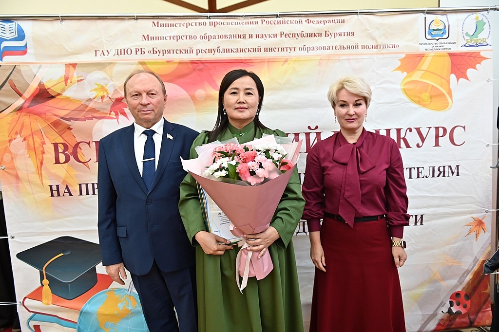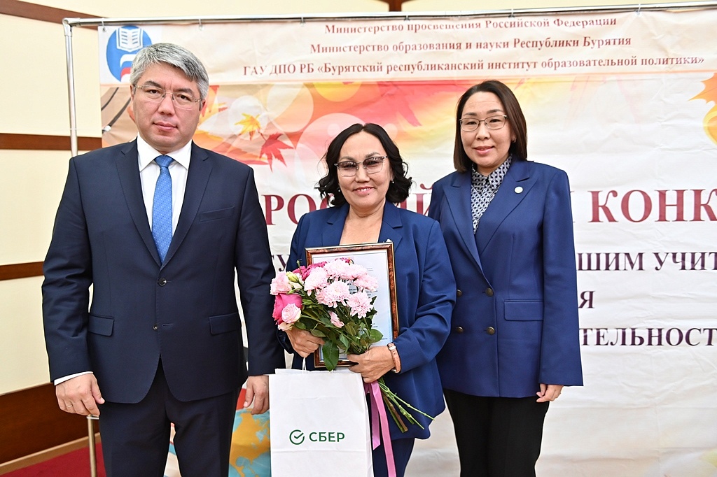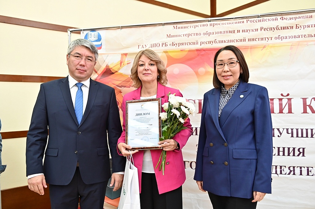 Глава Бурятии также во время церемонии присвоил почетное звание «Заслуженный учитель Республики Бурятия» победителю Всероссийского конкурса «Лучший учитель родного языка и родной литературы» Светлане Раданжаповой. Алексей Цыденов сообщил, что следующий конкурс пройдет в Бурятии.