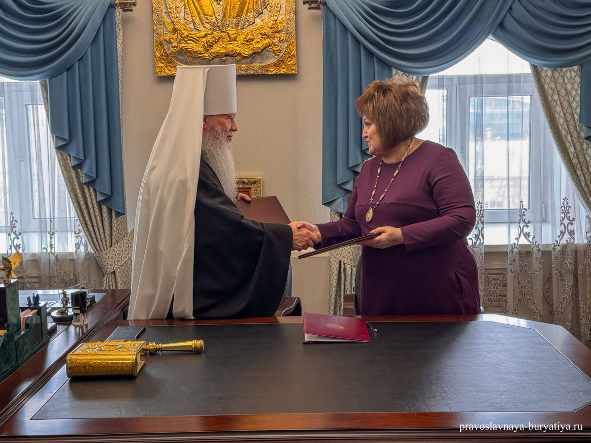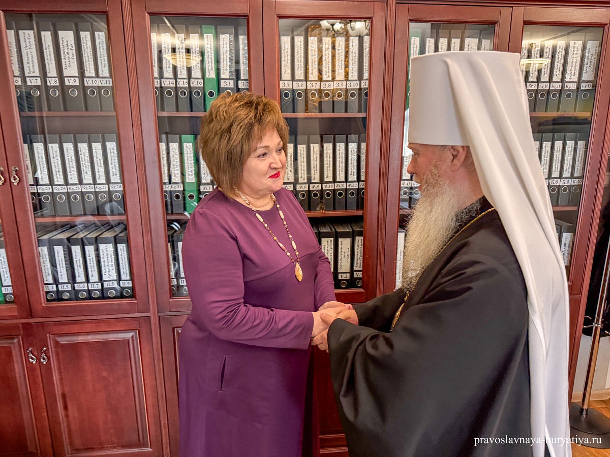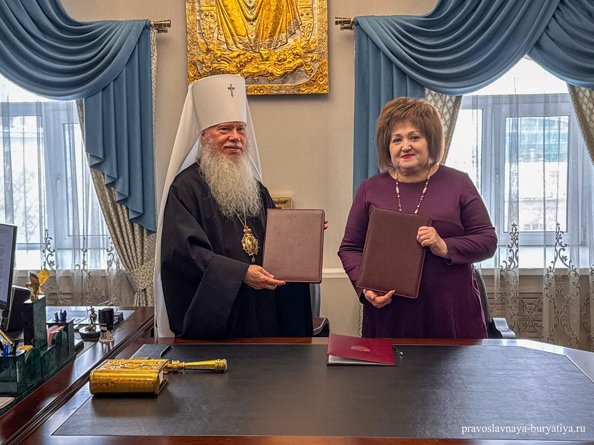 В здании епархиального управления Улан-Удэнской и Бурятской епархии Подписано соглашение о сотрудничестве состоялась встреча митрополита Иосифа с Председателем Общественной палаты Республики Бурятия Татьяной Гавриловной Думновой.