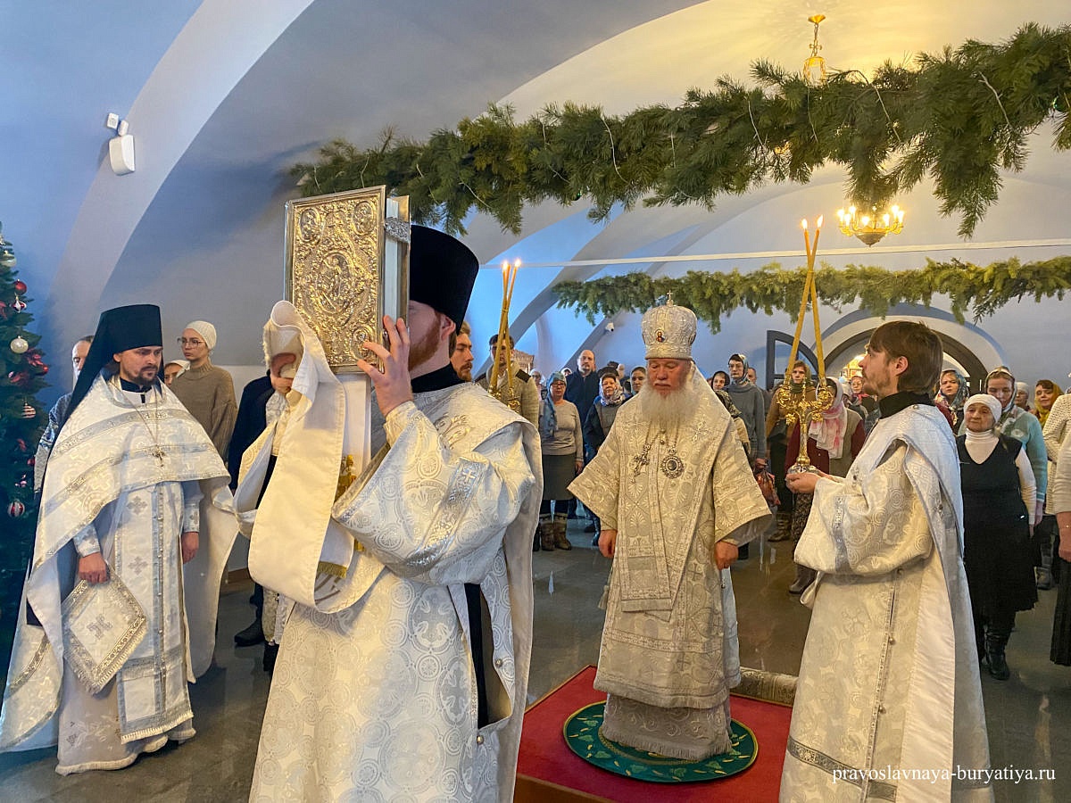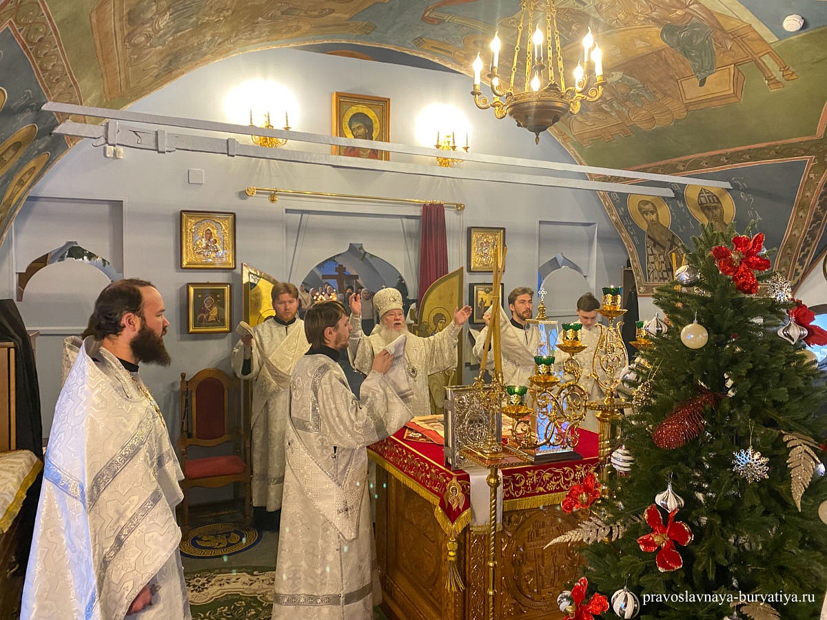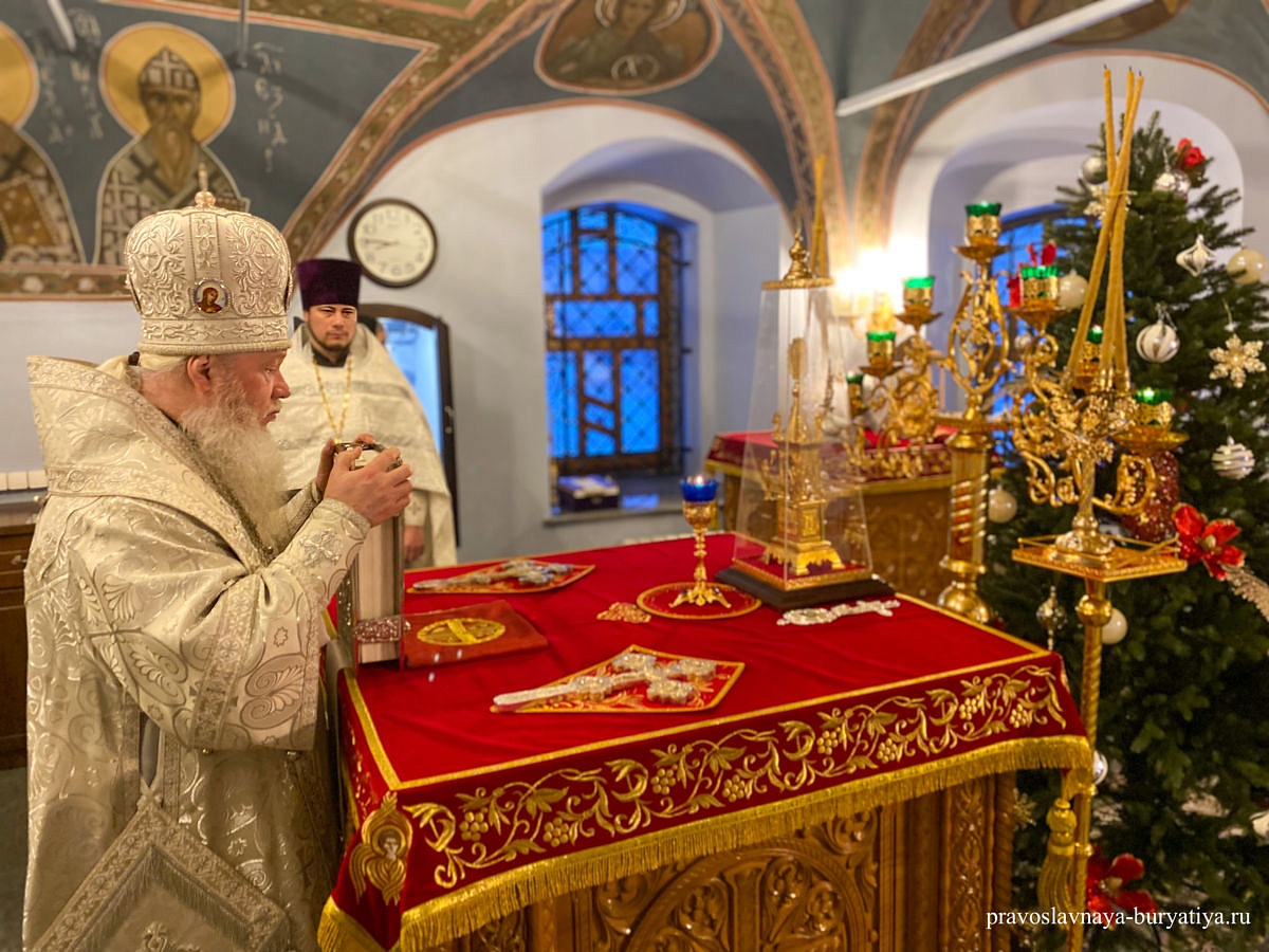 Сегодня, 6 января, в Навечерие Рождества Христова, митрополит Улан-Удэнский и Бурятский Иосиф совершил богослужения в Богоявленском приделе Свято-Одигитриевского собора Улан-Удэ.