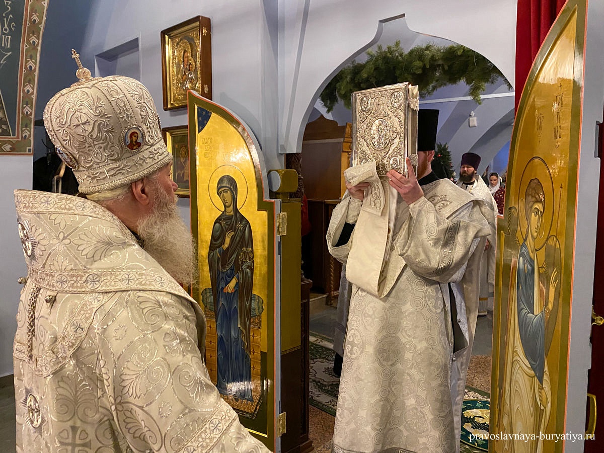 Затем глава Улан-Удэнской и Бурятской епархии обратился к молящимся со словами поздравления и духовного назидания.