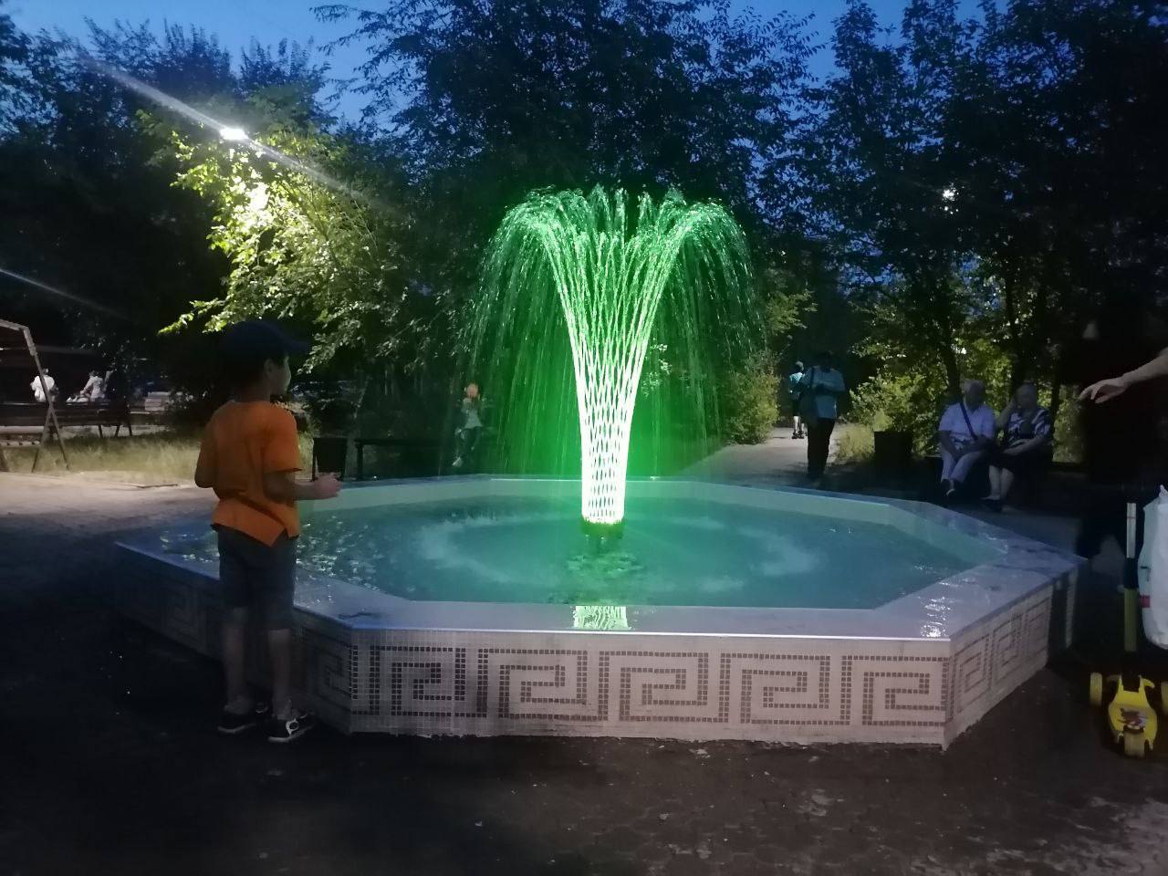 Долгое время фонтан был неисправен и не работал. В этом году мы выделили деньги и полностью отремонтировали его. Сегодня фонтан работает и радует жителей своим разноцветным водным шоу.