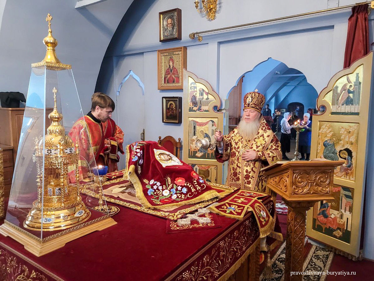 В канун дня памяти святого Димитрия Солунского митрополит Улан-Удэнский и Бурятский Иосиф совершил вечернее богослужение в Свято-Одигитриевском соборе Улан-Удэ. Духовенством было пропето величание, а по прочтении Евангелия молящиеся были помазаны освященным елеем.