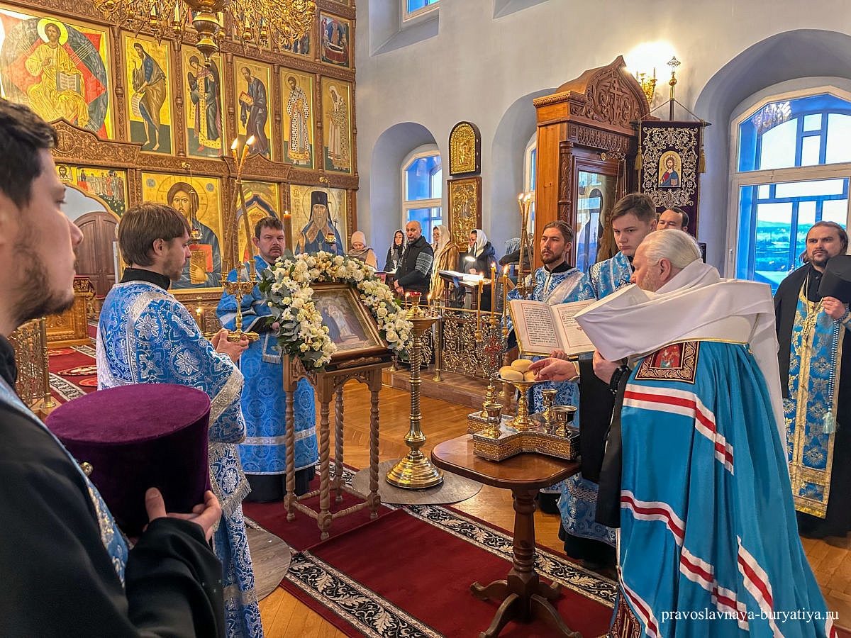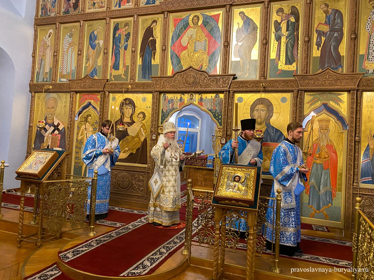 Накануне Сретения Господня митрополит Улан-Удэнский и Бурятский Иосиф возглавил совершение Всенощного бдения с литией в Одигитриевском соборе Улан-Удэ. За торжественным богослужением Владыка помазал молящихся освященным елеем. Клириками собора был прочитан канон праздника.