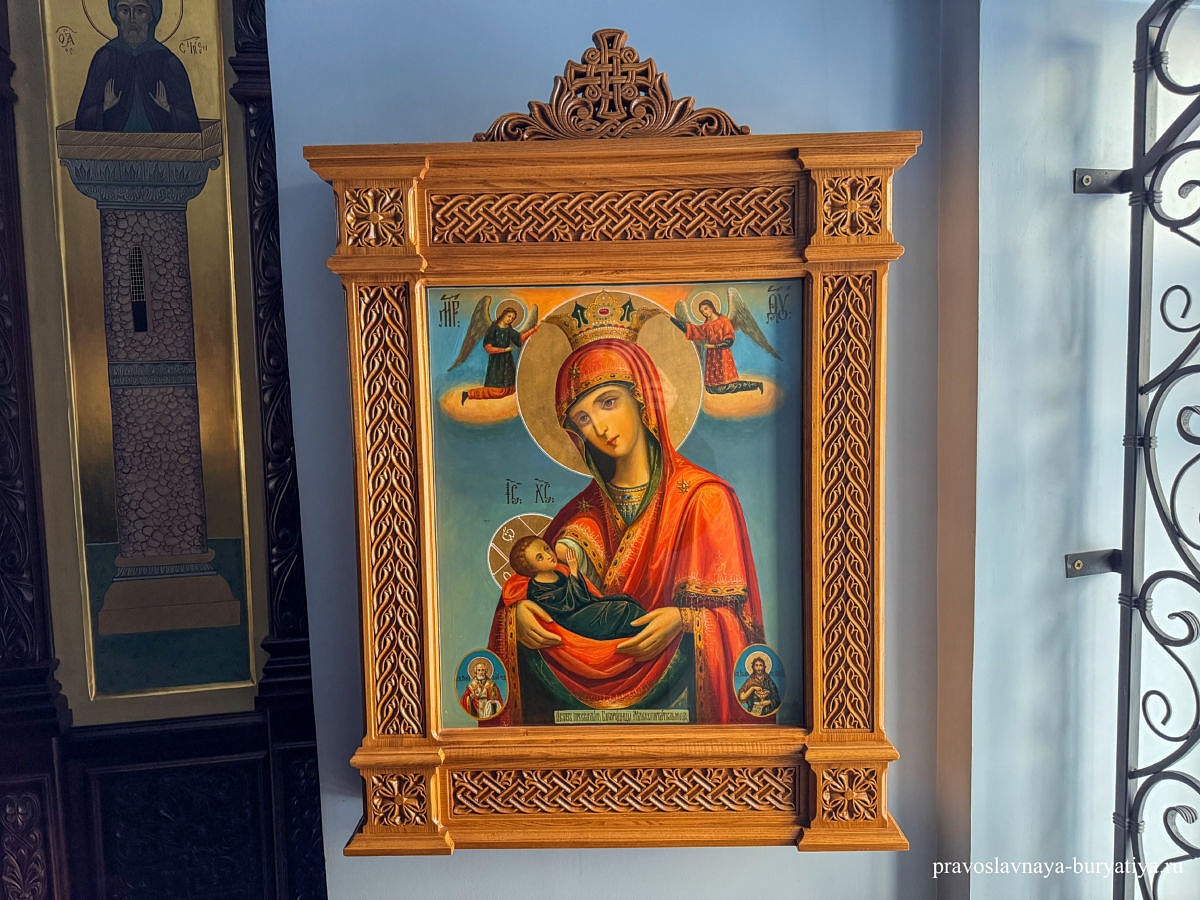 «История этого образа связана также и с именем преподобного Саввы Освященного, в Лавре которого близ Иерусалима она первоначально и находилась. Святой основатель Лавры перед своей блаженной кончиной в 532 году предсказал братии, что Лавру посетит паломник царского рода из Сербии по имени Савва, и повелел передать ему в благословение чудотворную икону. Это и произошло спустя шесть столетий – в ХIII веке. Святитель Савва Сербский привез образ Божией Матери «Млекопитательница» на Святую Гору Афон и поставил ее в церкви при приписанной к Хиландарскому монастырю келье в столице Афона селении Кариес, которая впоследствии была названа Типикарницей, так как там хранился устав (типик) святителя Саввы. Интересно, что, вопреки общему обыкновению, святая икона «Млекопитательницы» была поставлена святителем Саввой не по левую, а по правую сторону от Царских врат – месте, где обычно помещается икона Спасителя. Образ же Господа Вседержителя помещается по левую сторону, где обыкновенно должна стоять икона Божией Матери», - рассказали в Улан-Удэнской и Бурятской епархии.
