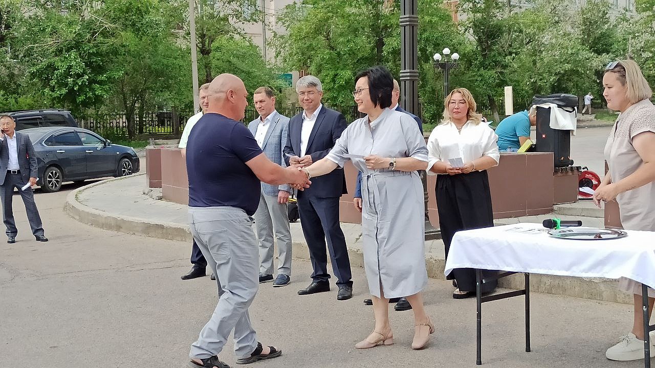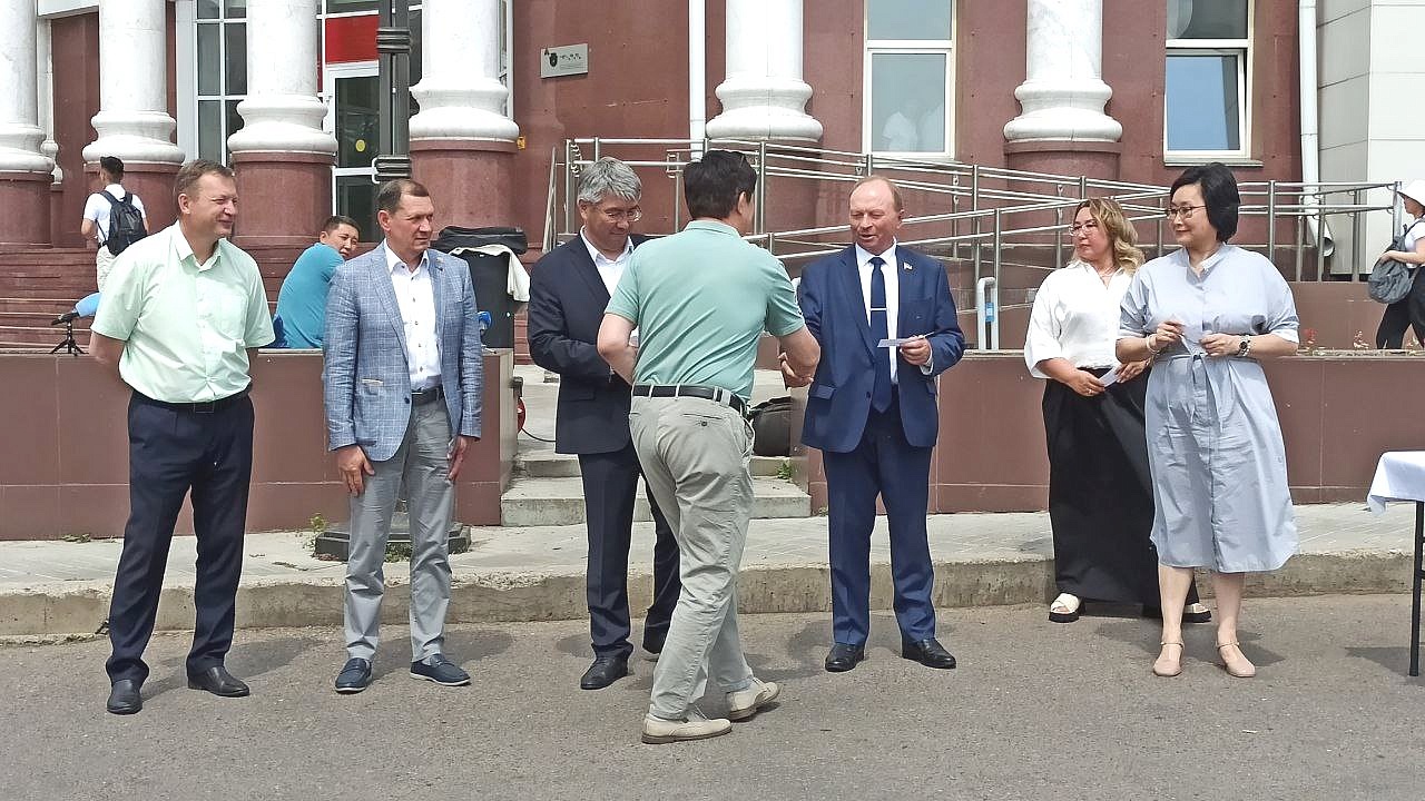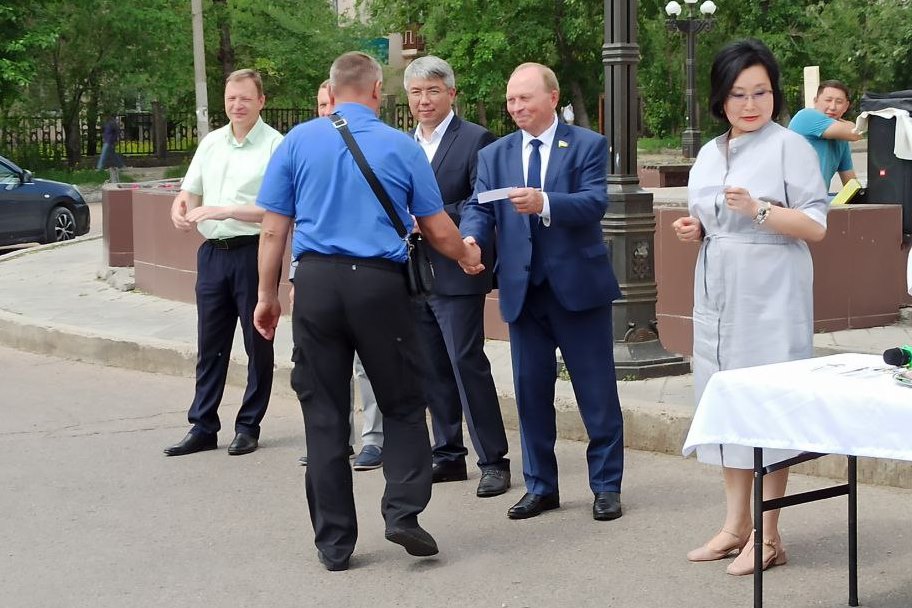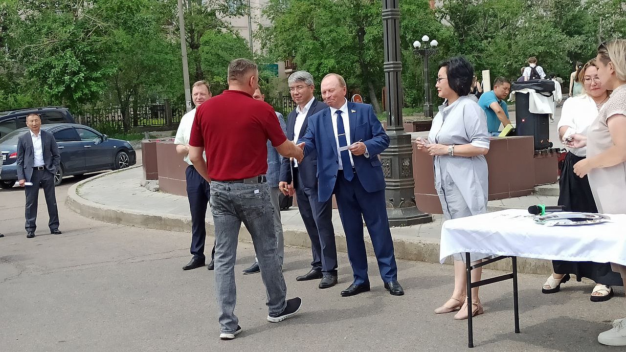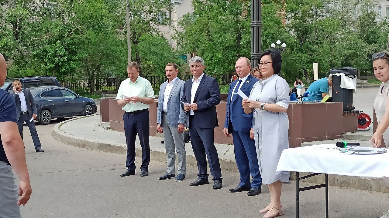 На торжественной церемонии ключи от медицинских машин вручили глава Бурятии Алексей Цыденов, министр здравоохранения Бурятии Евгения Лудупова, председатель Народного Хурала Бурятии Владимир Павлов, депутат Народного Хурала Игорь Марковец, мэр города Улан-Удэ Игорь Шутенков.