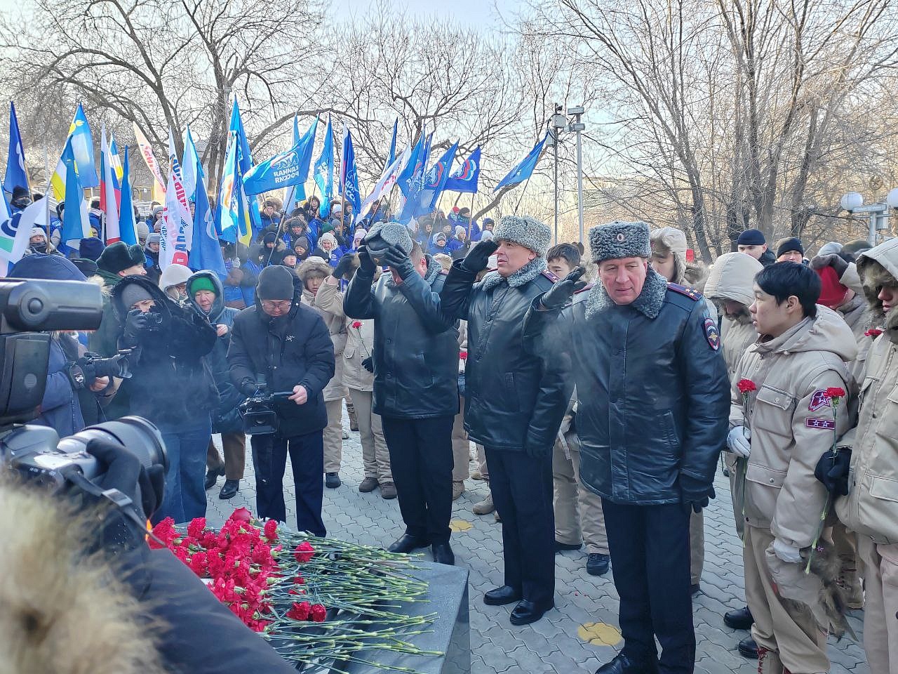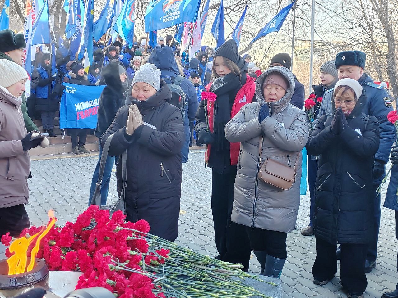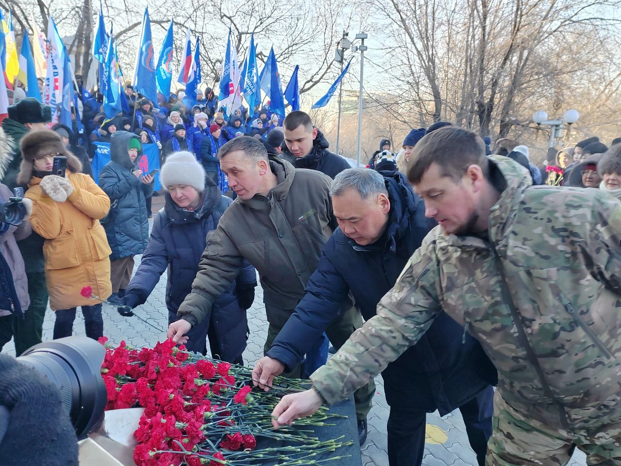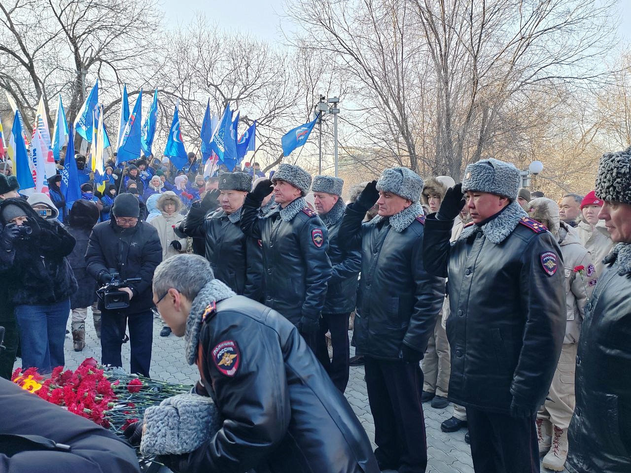 Несмотря на сильный мороз на мемориале Победы собралось сегодня множество организаций и обычных горожан, представители всех ветвей власти, общественных организаций и учреждений образования. Торжественный митинг в честь Дня защитника Отечества открыл врио командующий 36 армии ВВО, генерал-майор, Герой России Владимир Анатольевич Белявский, Глава Бурятии Алексей Цыденов и другие руководители республики.
