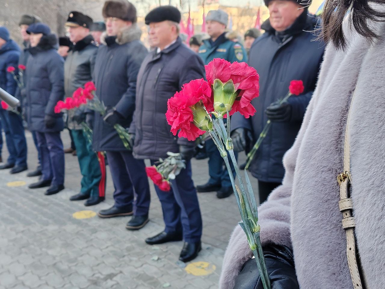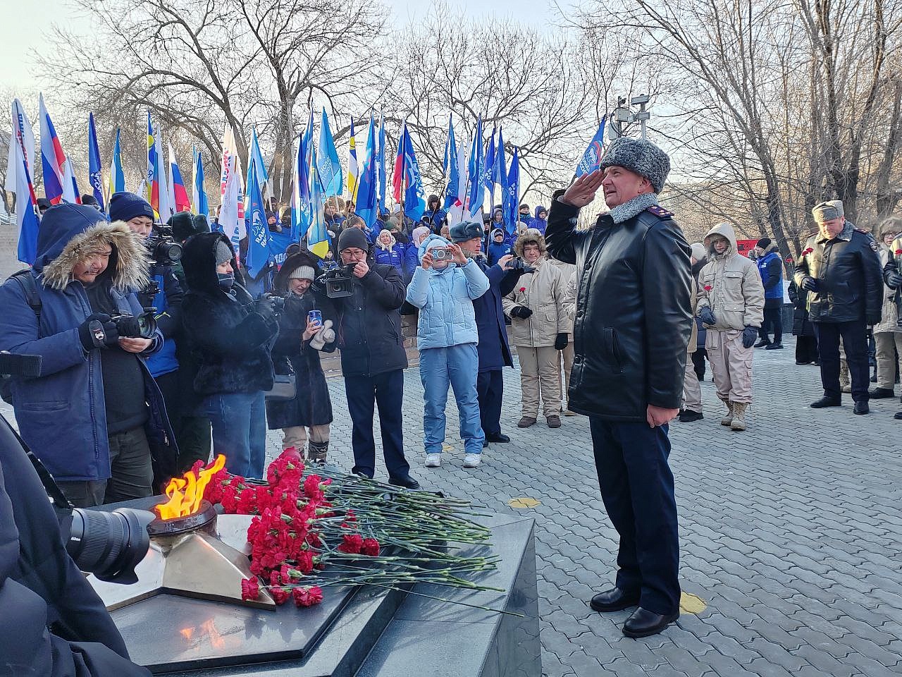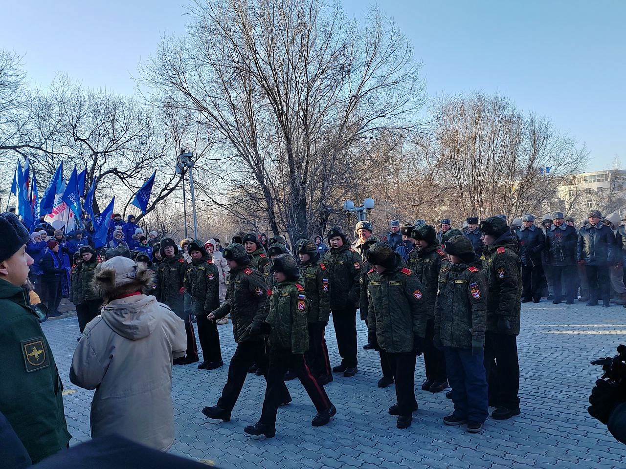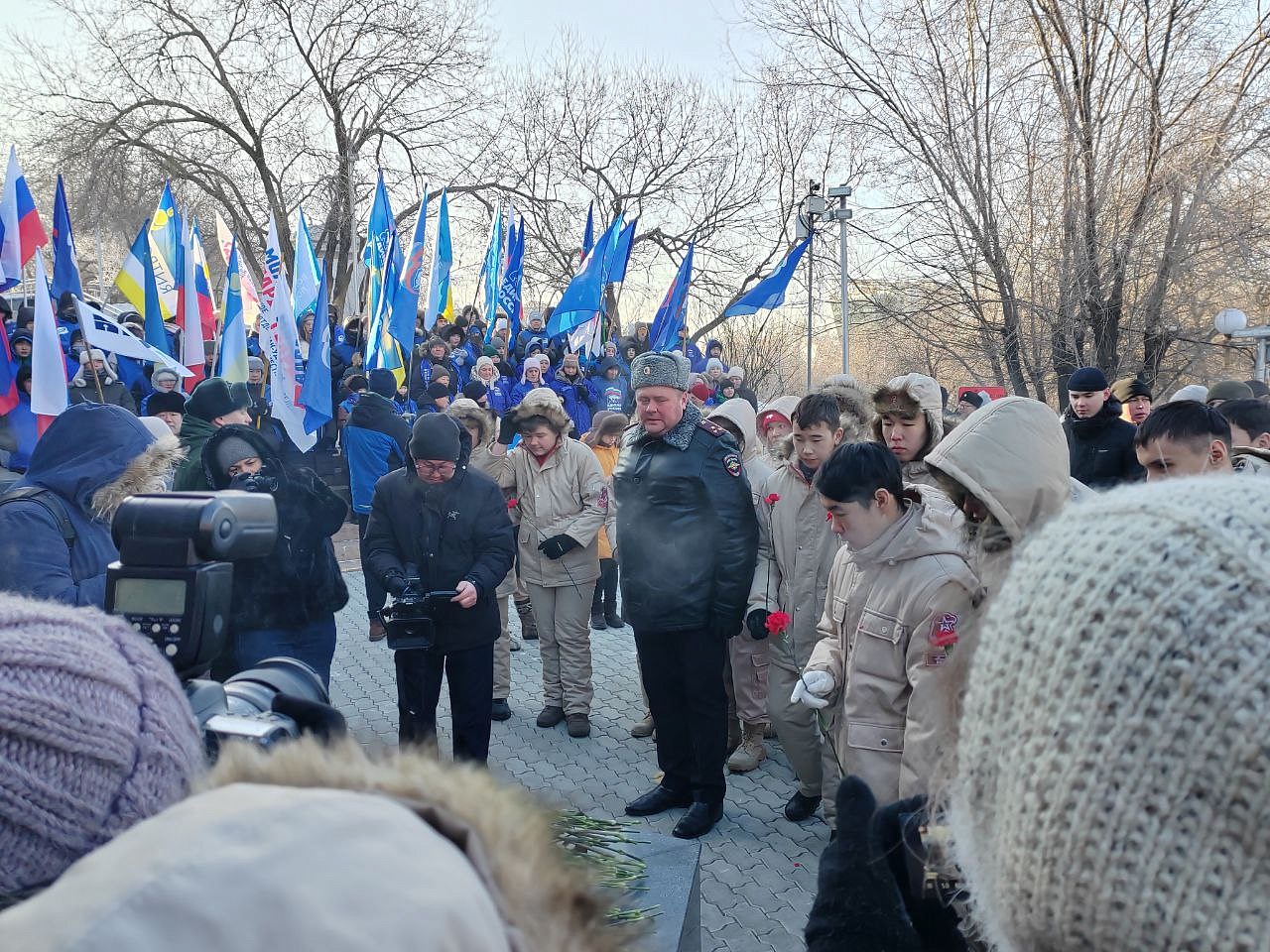 Несмотря на сильный мороз на мемориале Победы собралось сегодня множество организаций и обычных горожан, представители всех ветвей власти, общественных организаций и учреждений образования. Торжественный митинг в честь Дня защитника Отечества открыл врио командующий 36 армии ВВО, генерал-майор, Герой России Владимир Анатольевич Белявский, Глава Бурятии Алексей Цыденов и другие руководители республики.