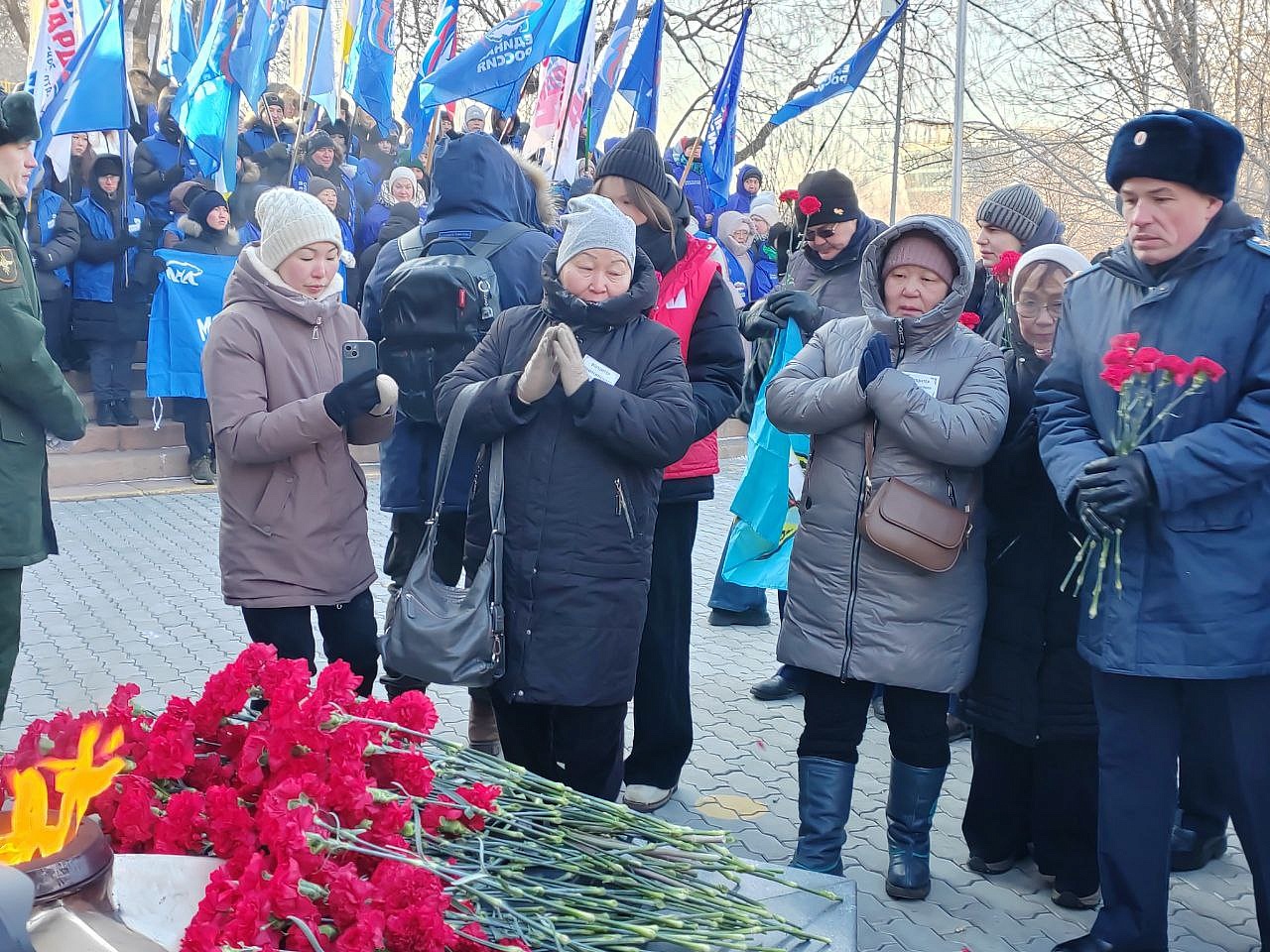 Собравшиеся почтили минутой молчания всех героев, отдавших жизни за свободу своей Родины, после чего возложили цветы к вечному огню, отдав дань уважения всем, кто ценой своей жизни отстоял мир и свободу для будущих поколений.