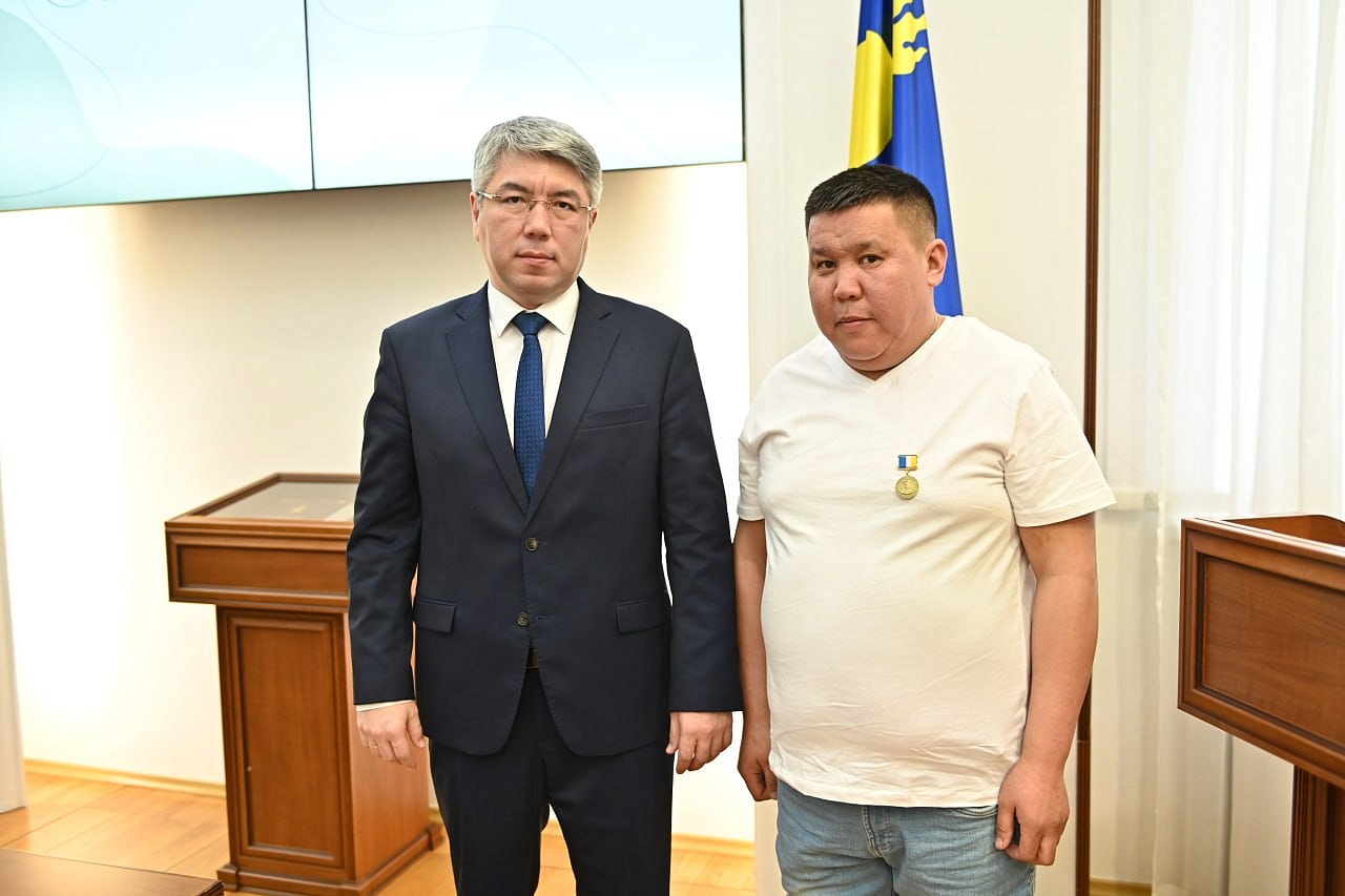 За мужество и самоотверженность, проявленные при выполнении опасных задач и поддержке бойцов СВО, Алексею Будаеву и Белигто Галданову была вручена государственная награда – медаль Алдара Цыденжапова.