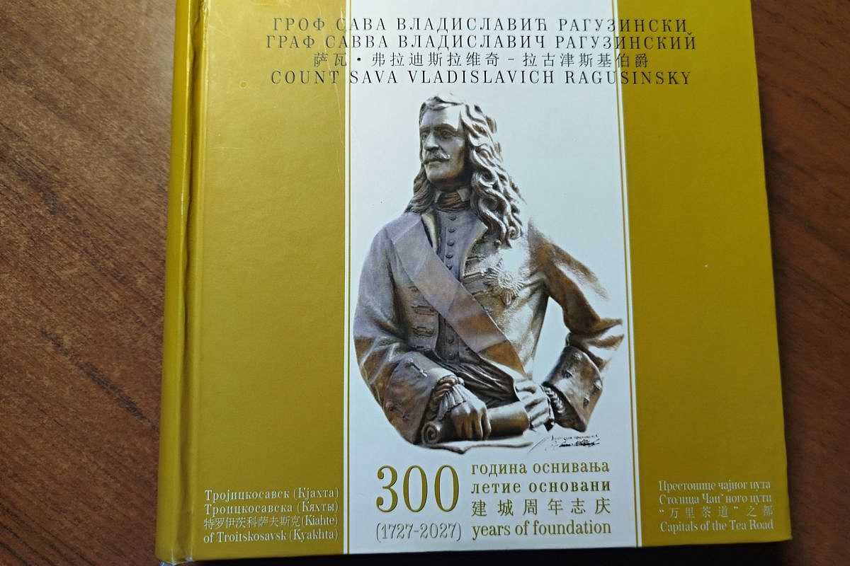 «Граф Савва Владиславич Рагузинский 300-летие основания Троицкосавска Столицы Чайного пути (1727-2027)» объёмом более 760 страниц. Гости из Кяхты получили в подарок по такой книге.