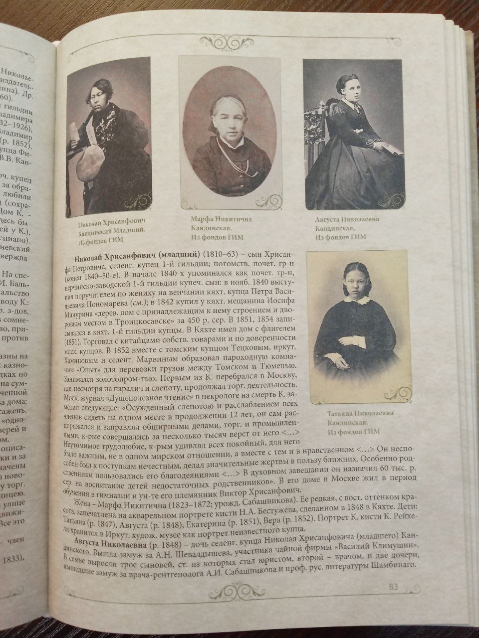 - В 2018 году Кяхту посетила Евгения Владиславовна Комлева, крупнейший исследователь сибирского купечества (составитель фундаментальной «Энциклопедии сибирского купечества»), я предложила коллеге подумать над изданием словаря кяхтинских купцов. Думали 9 лет, в этом году при поддержке Министерства культуры Республики Бурятия мы подошли к финишу: вот результат работы - «Кяхта торговая: материалы к биографическому словарю».