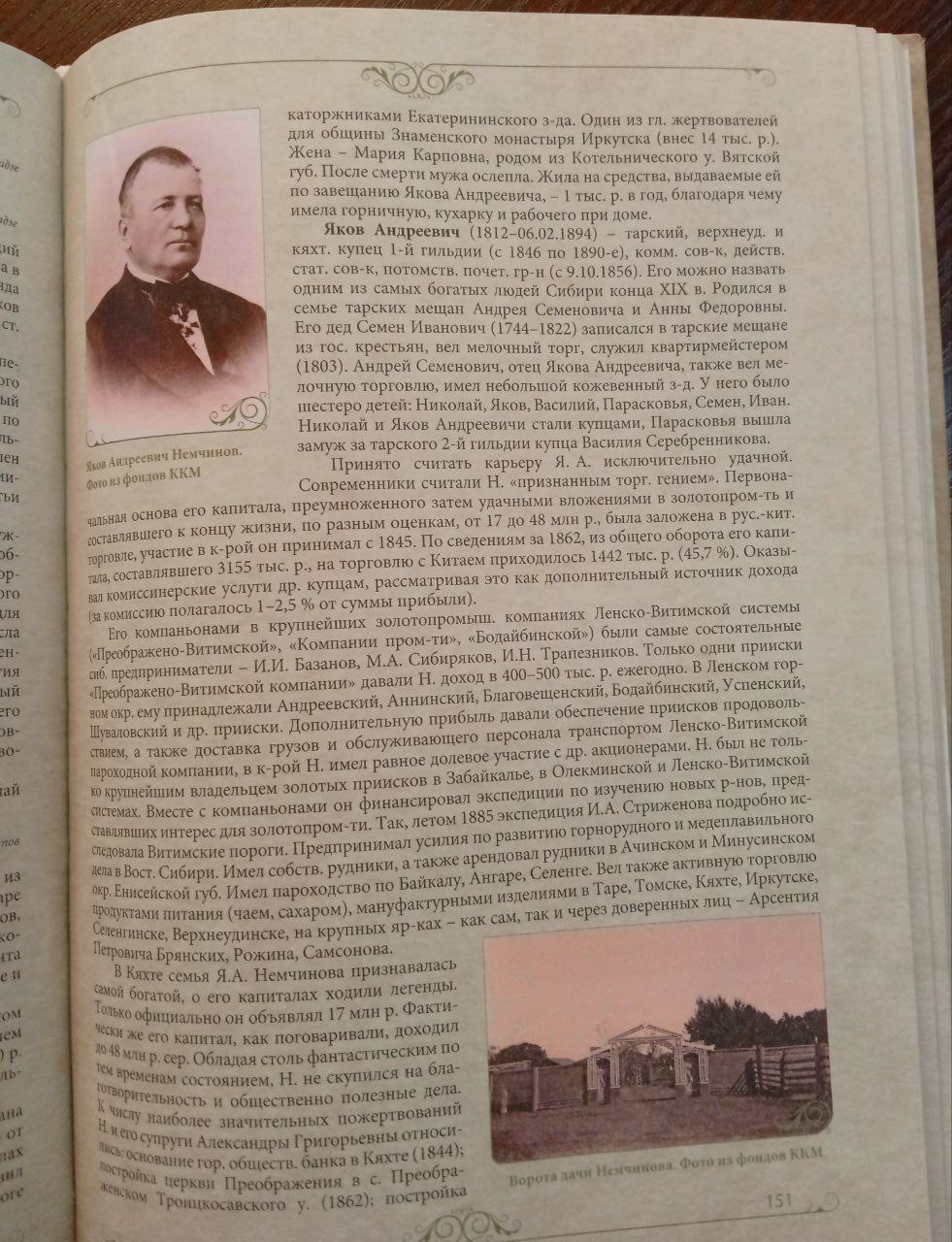 В только что изданной книге биография кяхтинских купцов на 15 строчек. А мы готовы по каждому из купцов выдать большой красивый биографический очерк. Каждый достоин, чтобы мы о нём рассказали. Вчера я получила книгу историка И. В. Щеглова из Кяхты. Все историки Сибири делают сноски на Щеглова. А мы не имеем его биографии, кроме публикации Э. В. Демина.