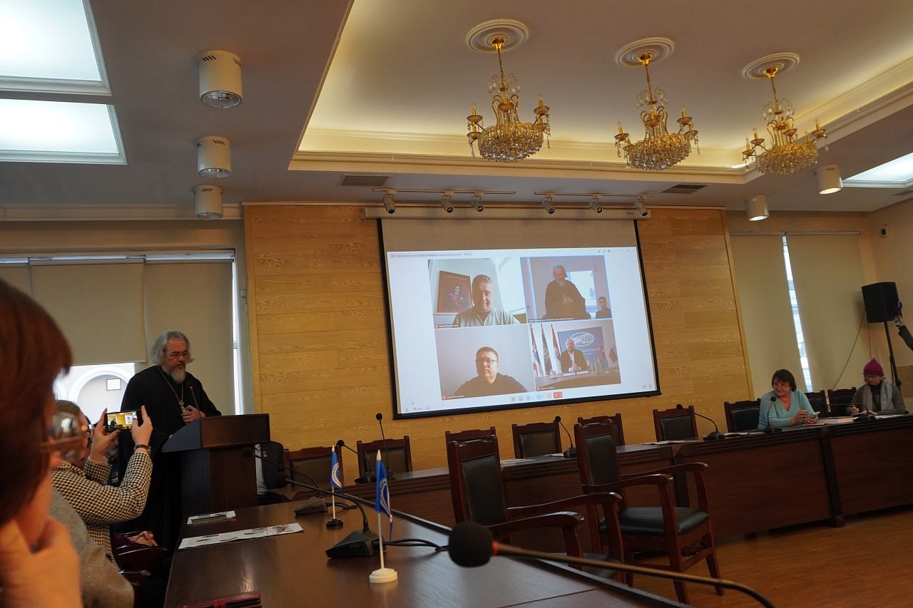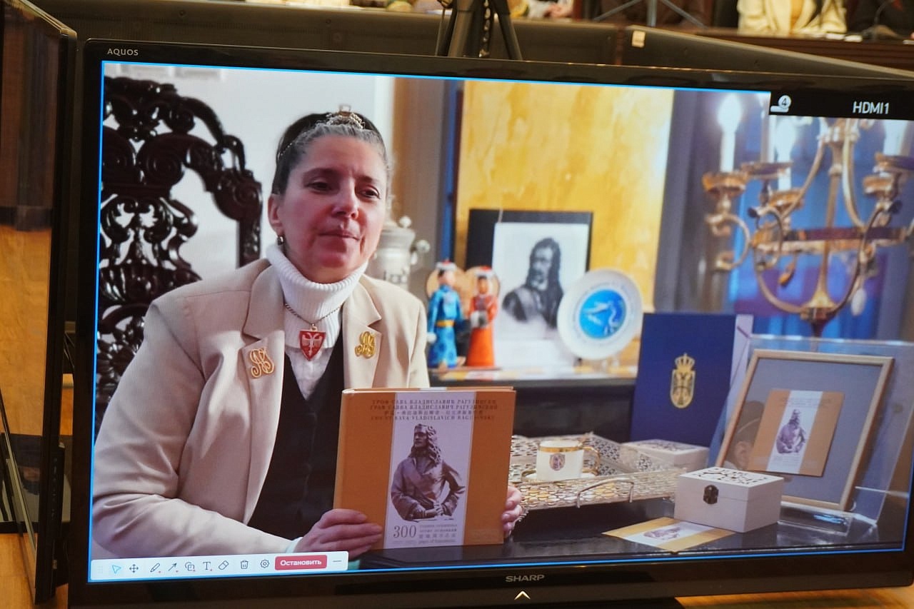 Ведущая (модератор) сказала, по какому поводу все здесь собрались и представила почётных гостей презентации. На пяти экранах в режиме онлайн присутствовали гости из Белграда и Сремски-Карловци - Республики Сербии, Москвы и Санкт-Петербурга.