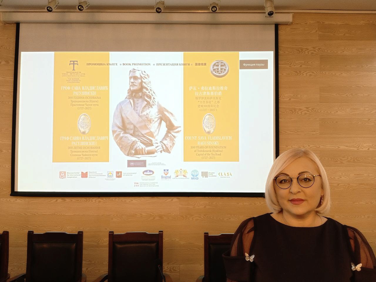 Рад приветствовать вас на презентации книги «Граф Савва Владиславич-Рагузинский», посвящённой 300-летию основания города Троицкосавска, города, который свидетельствует об исторических связях Сербии и России. Для меня большая честь и удовольствие присутствовать на презентации этого уникального издания, раскрывающего многогранную личность графа Саввы и его значимость в истории сербско-российских отношений. Граф Савва Владиславич- серб из города Гацко, который стал русским дипломатом. Это человек, который определил действующую границу между Россией и Китаем, основал город, посвящённый святому Савве Сербскому. Это уникальная личность, которая вдохновила и воодушевила… Благодаря ему наши братские отношения длятся веками. Поэтому Канцелярия общественной и культурной дипломатии, Правительство Республики Сербия поддержали съёмки сериала о нём.