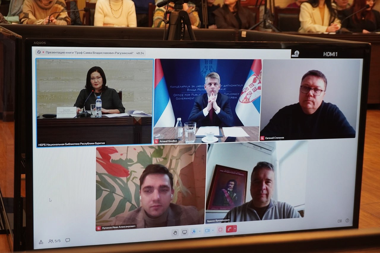Потомок Савы Владиславича Бранко Вукоманович сказал с улыбкой, что рад всех видеть. Даже через видео. Особенно рад, что хозяева этого мероприятия - Национальная библиотека Республики Бурятия.