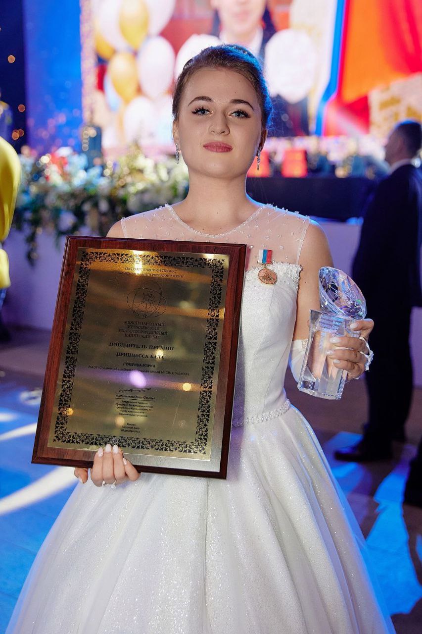 Ученица школы № 58 города Улан-Удэ Мария Печерина получила звание «Принцесса бала» VIII Международного Кремлевского благотворительного кадетского бала.