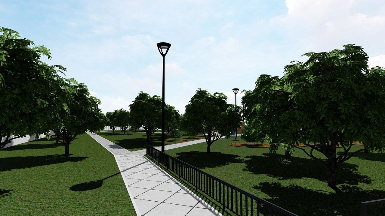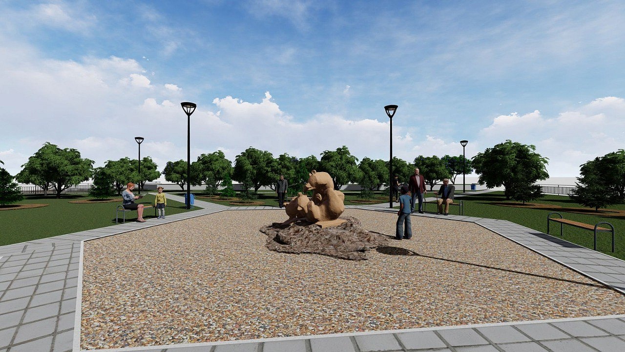 Детской площадки на привычном месте не будет – центральное место займет скульптурная композиция в виде трех медведей из архитектурного бетона с металлическим каркасом. Обновят здесь и ограждение, установят новое освещение, скамейки и урны.