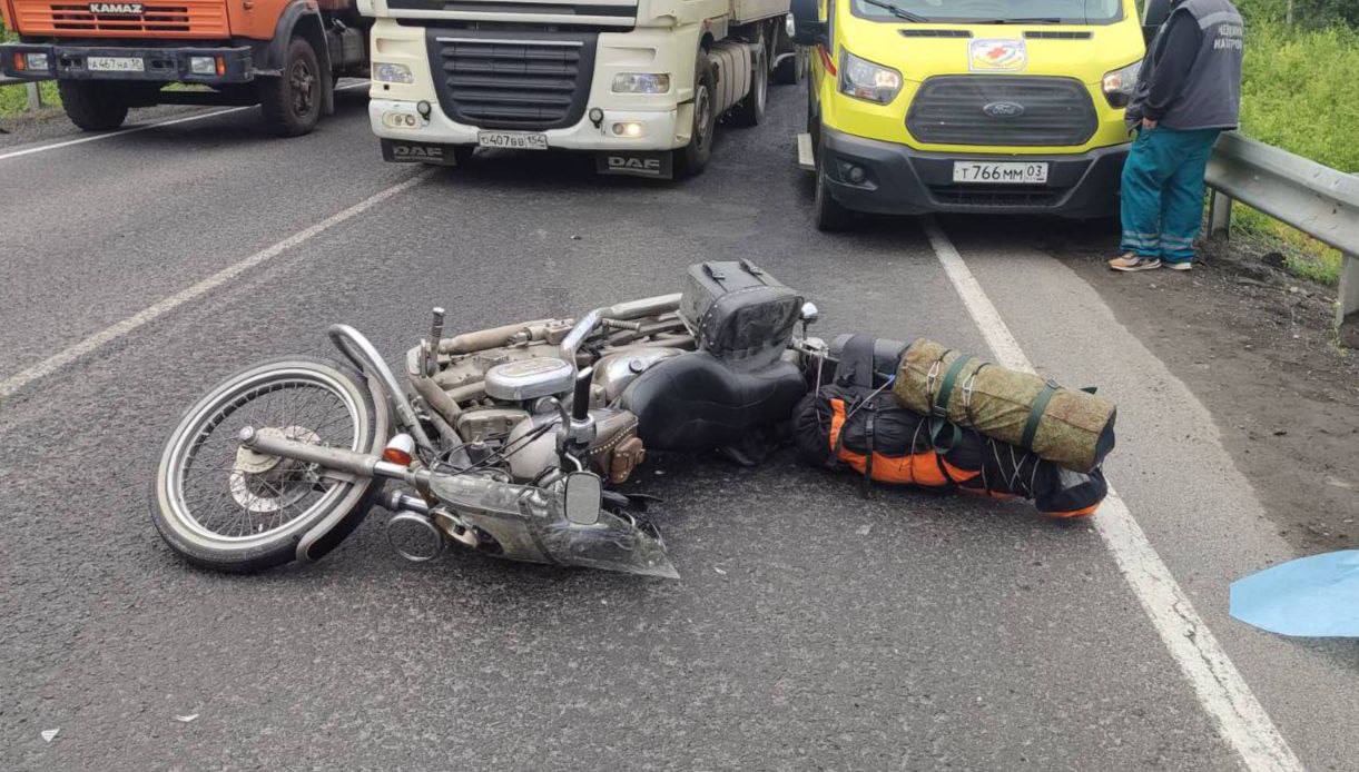 Сегодня около 13 часов на 222 км. федеральной автодороги "Иркутск - Улан-Удэ - Чита" в районе села Танхой 70-летний водитель мотоцикла "Харли Дэвидсон" столкнулся с автомобилем "КАМАЗ".