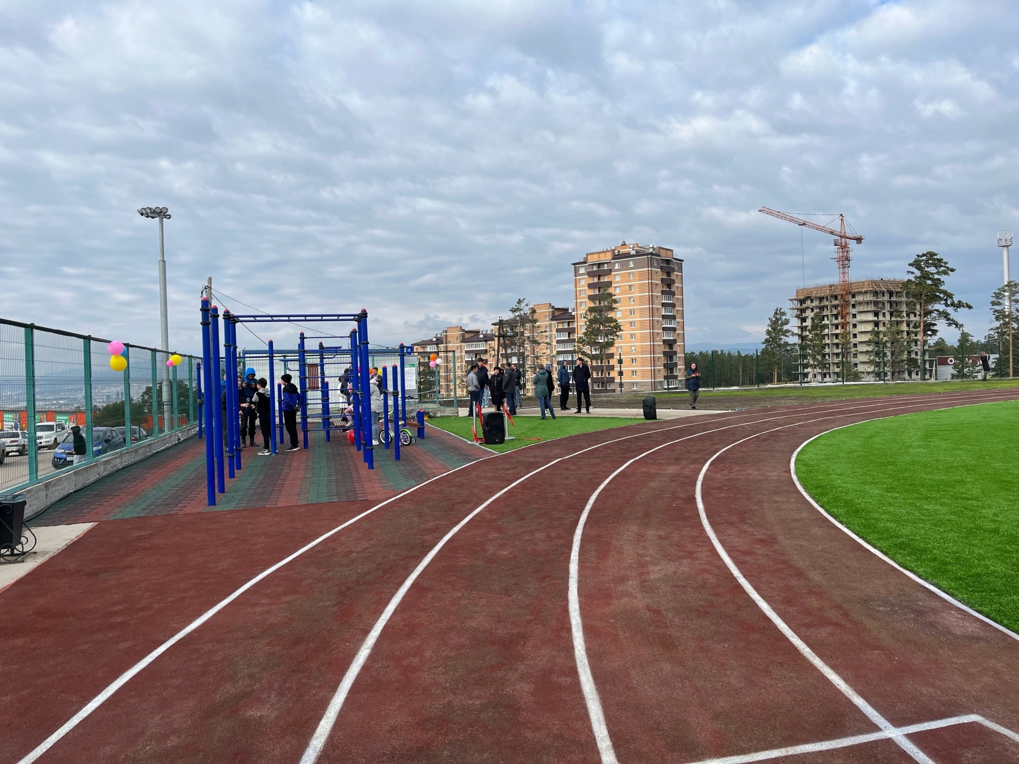 В распоряжении спортсменов – футбольное поле с искусственным газоном, четыре беговых дорожки с резиновым покрытием, волейбольная и баскетбольная площадки, за виражами беговых дорожек высажен натуральный газон, установлены ограждения-мячеуловители. Кроме того, стадион полностью освещен и огорожен, откосы стадиона укреплены геосеткой с высаживанием натурального газона.