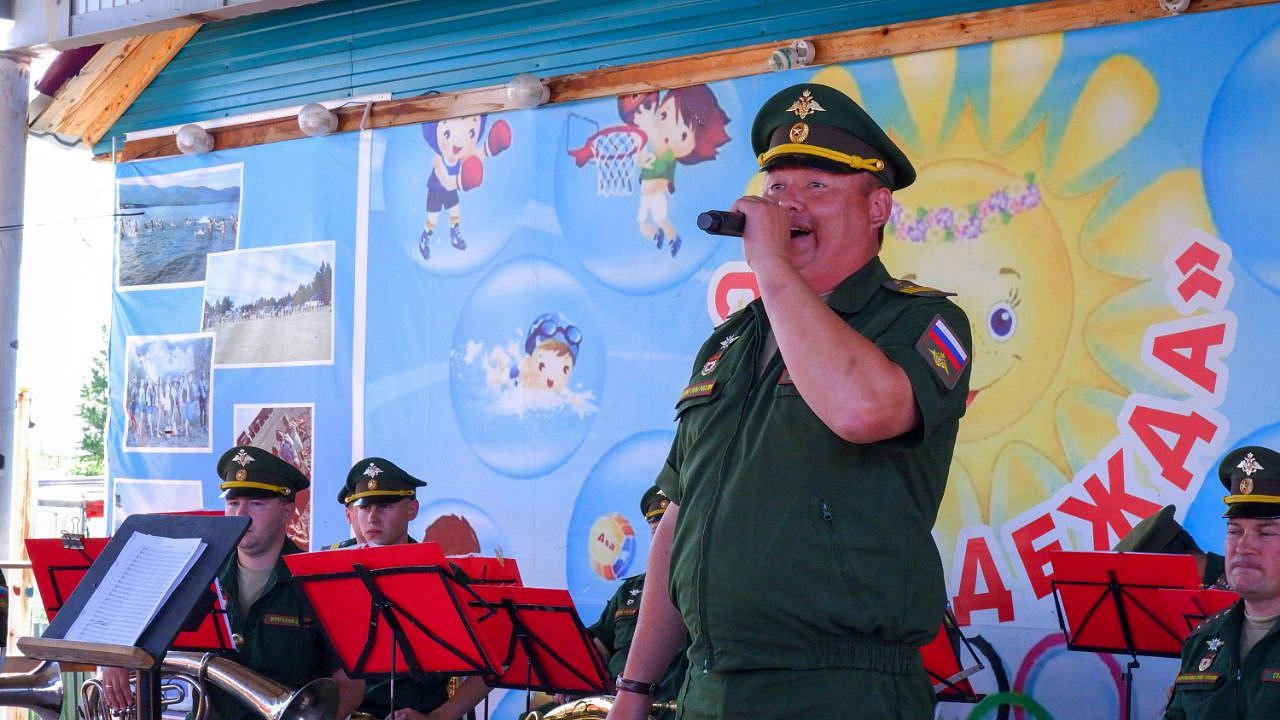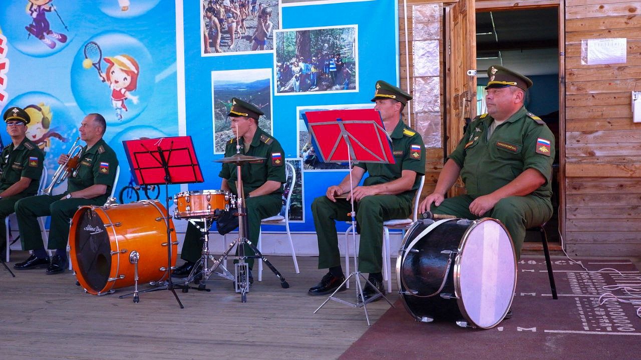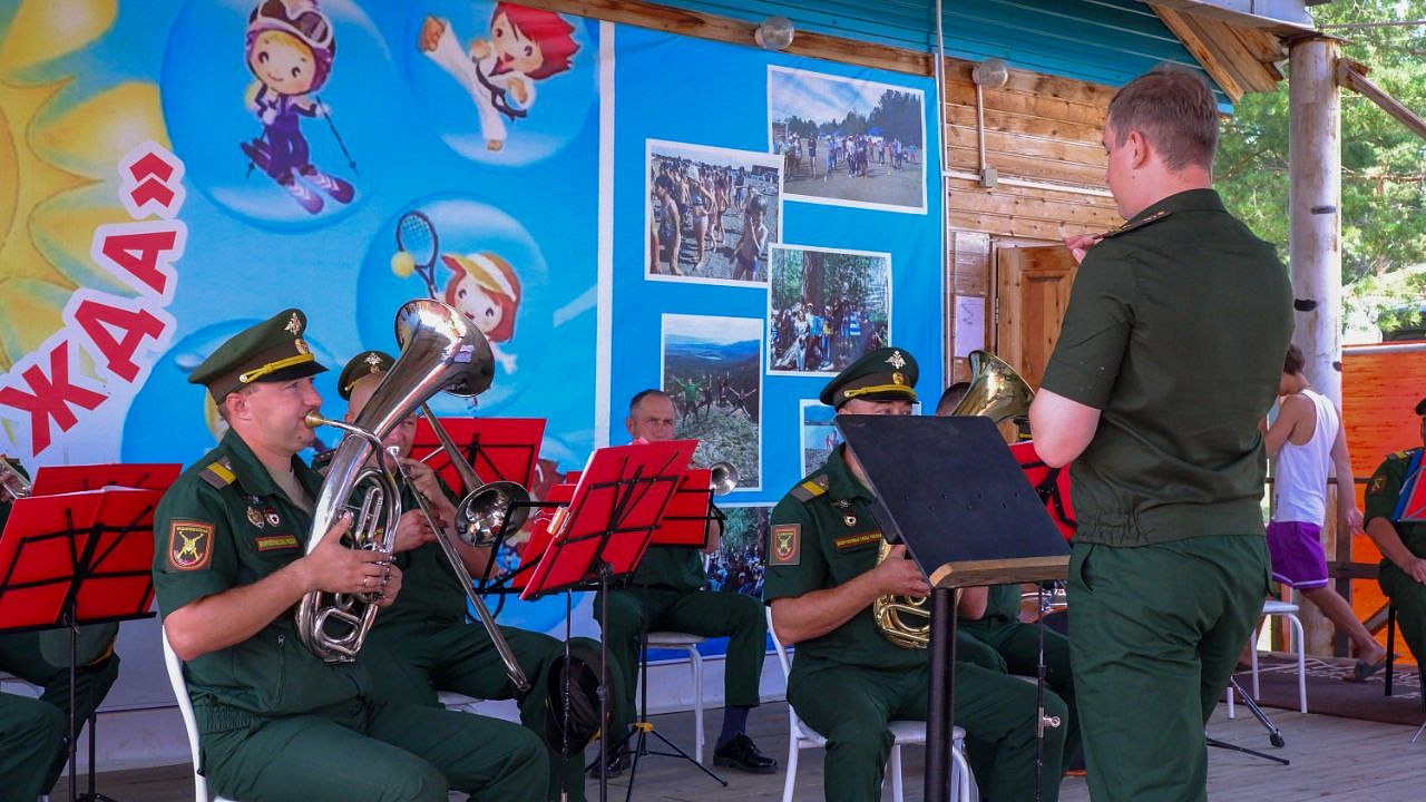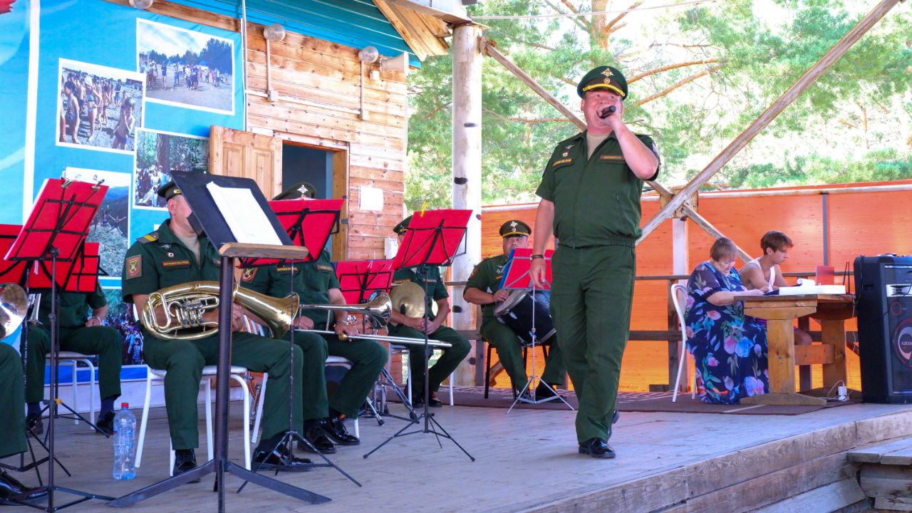 Военный оркестр 37-й отдельной гвардейской мотострелковой бригады им. Е. Щаденко провел концерт для отдыхающих оздоровительного лагеря «Надежда» на озере Щучье. Выступление прошло в рамках тематического всероссийского музыкального марафона «Zа мир без нацизма».
