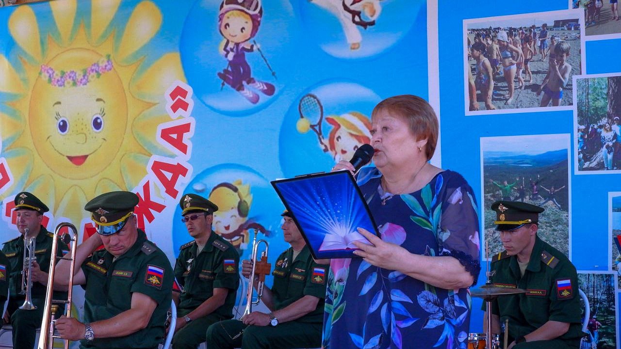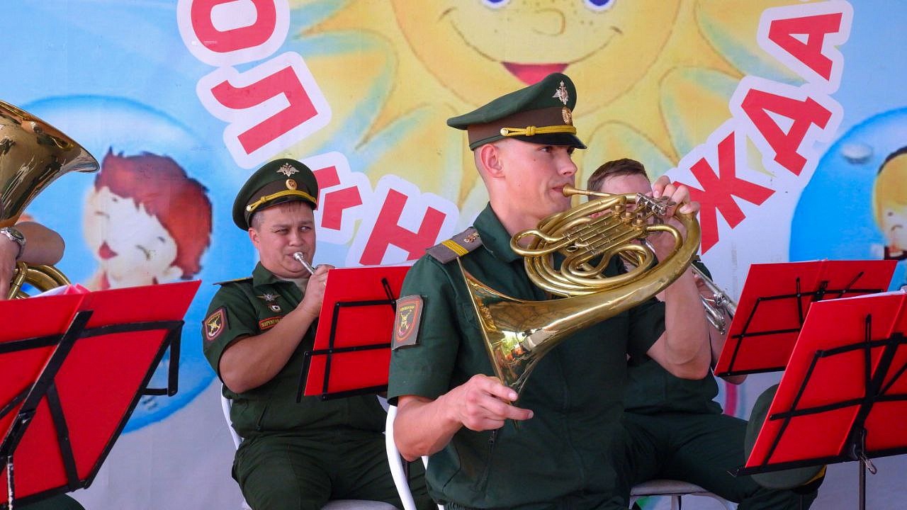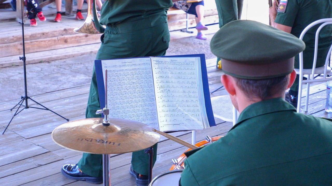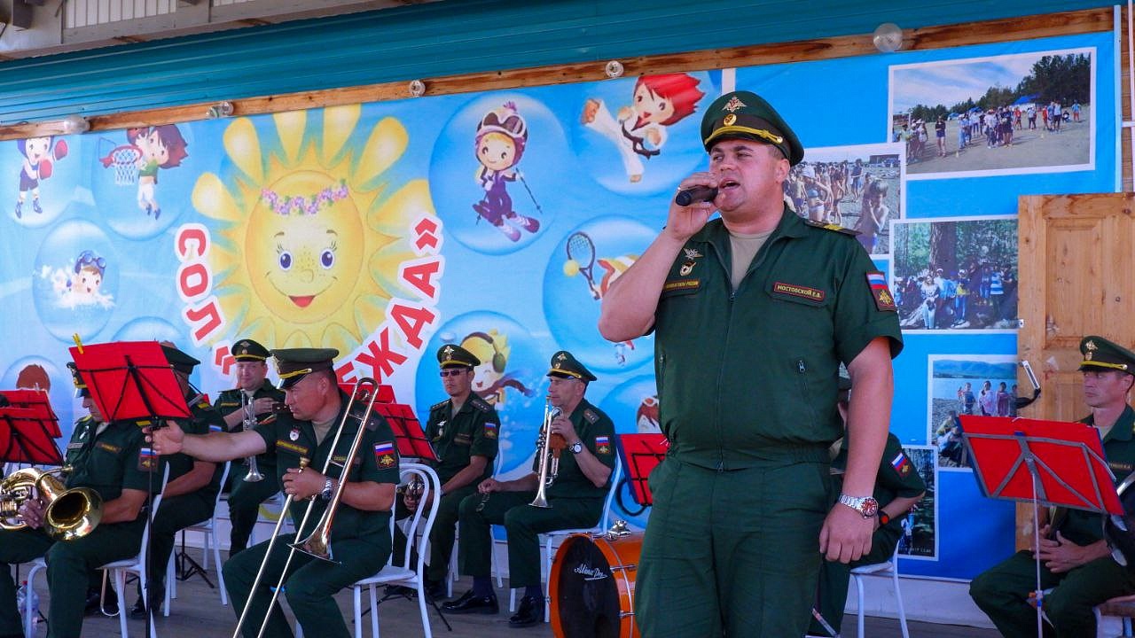 Военный оркестр 37-й отдельной гвардейской мотострелковой бригады им. Е. Щаденко провел концерт для отдыхающих оздоровительного лагеря «Надежда» на озере Щучье. Выступление прошло в рамках тематического всероссийского музыкального марафона «Zа мир без нацизма».