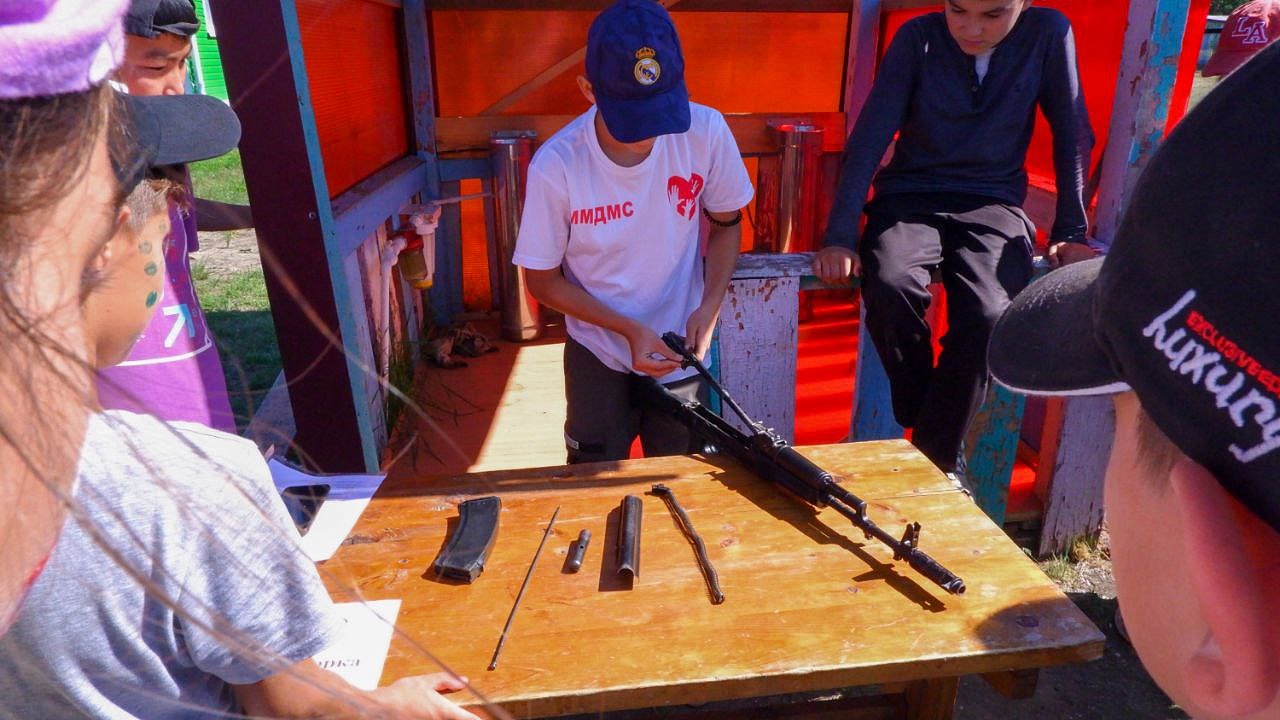 После концерта для ребят провели квест «Защитники Отечества», организаторами выступили активисты молодежного центра «ММДМС» из Гусиноозерска, штаб Союза добровольцев Бурятии и фонд «Защитники Отечества». Детей научили стрелять из пневматической винтовки, собирать и разбирать автомат и метать гранаты.