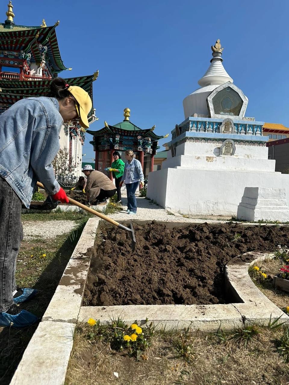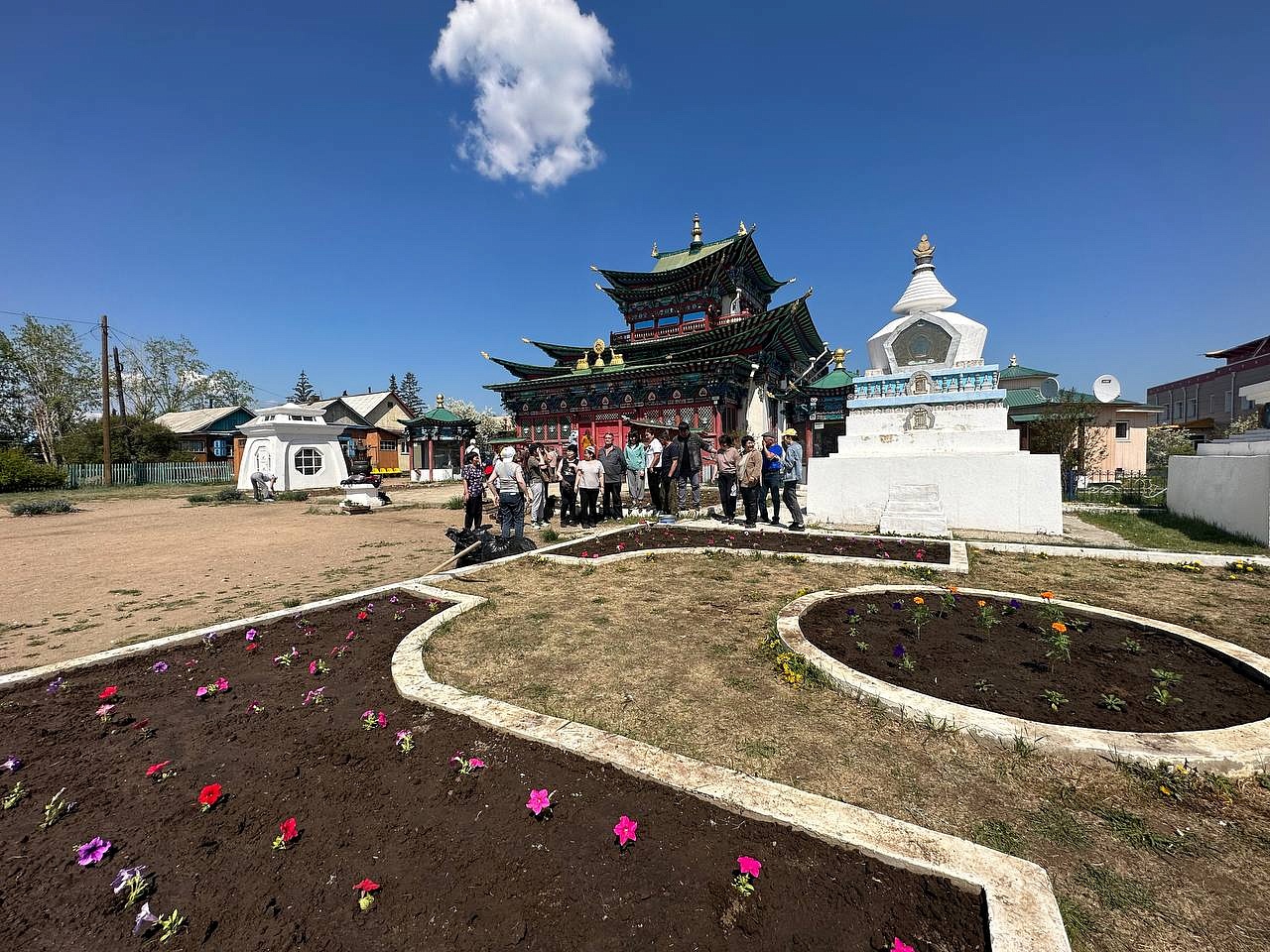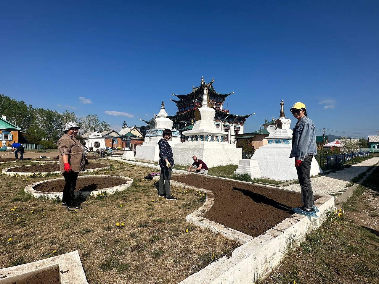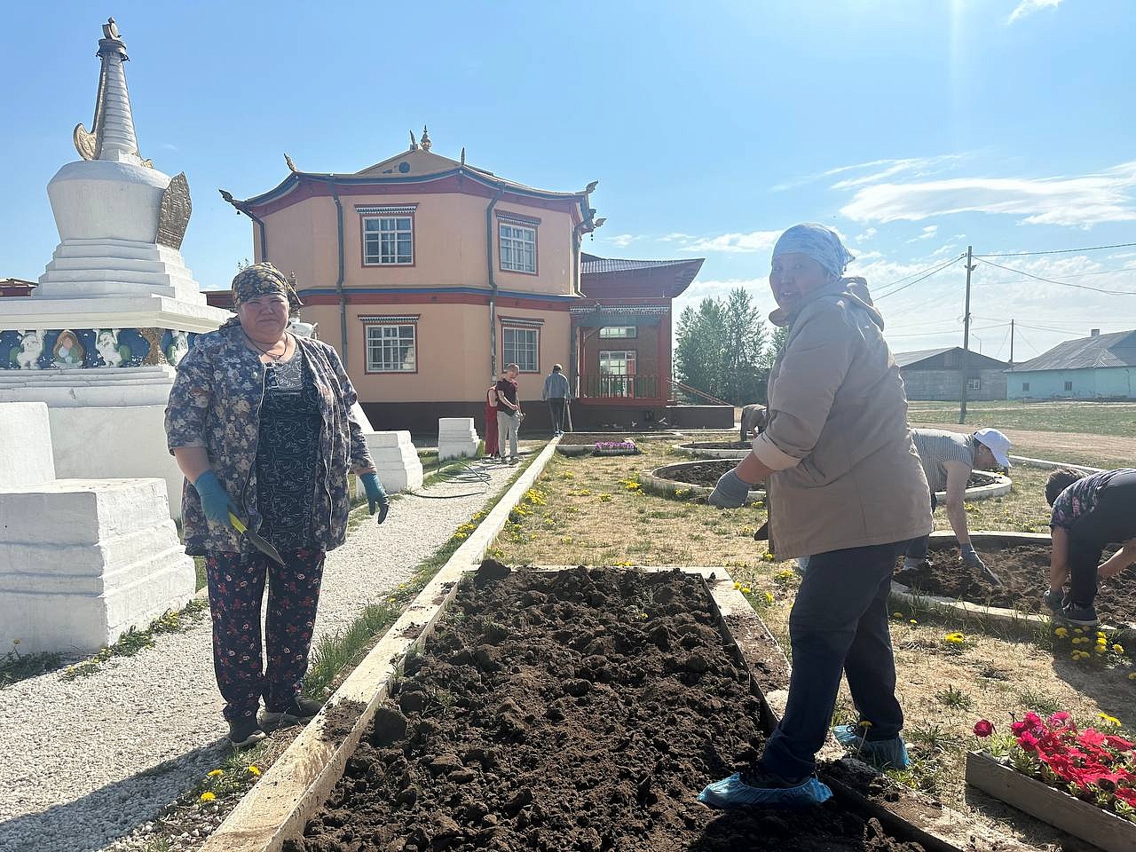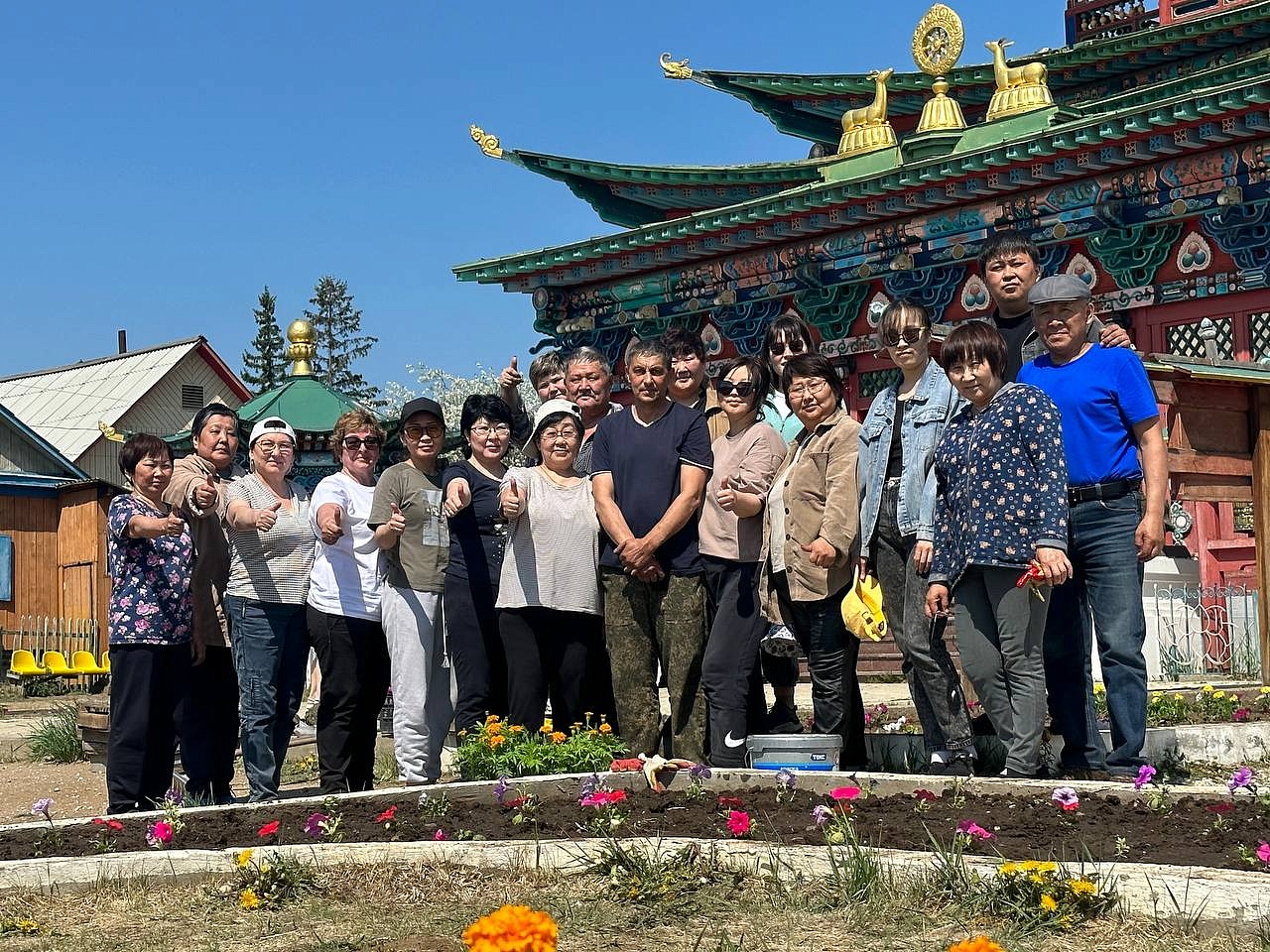 Продолжается священный месяц Сака Дава, когда все благие деяния увеличиваются во много тысяч раз. Уже третий год подряд в этот месяц сотрудники «Буркоопсоюза» приезжают в Иволгинский дацан, чтобы украсить территорию перед Дворцом Пандито Хамбо Ламы Этигэлова и высаживают цветы.