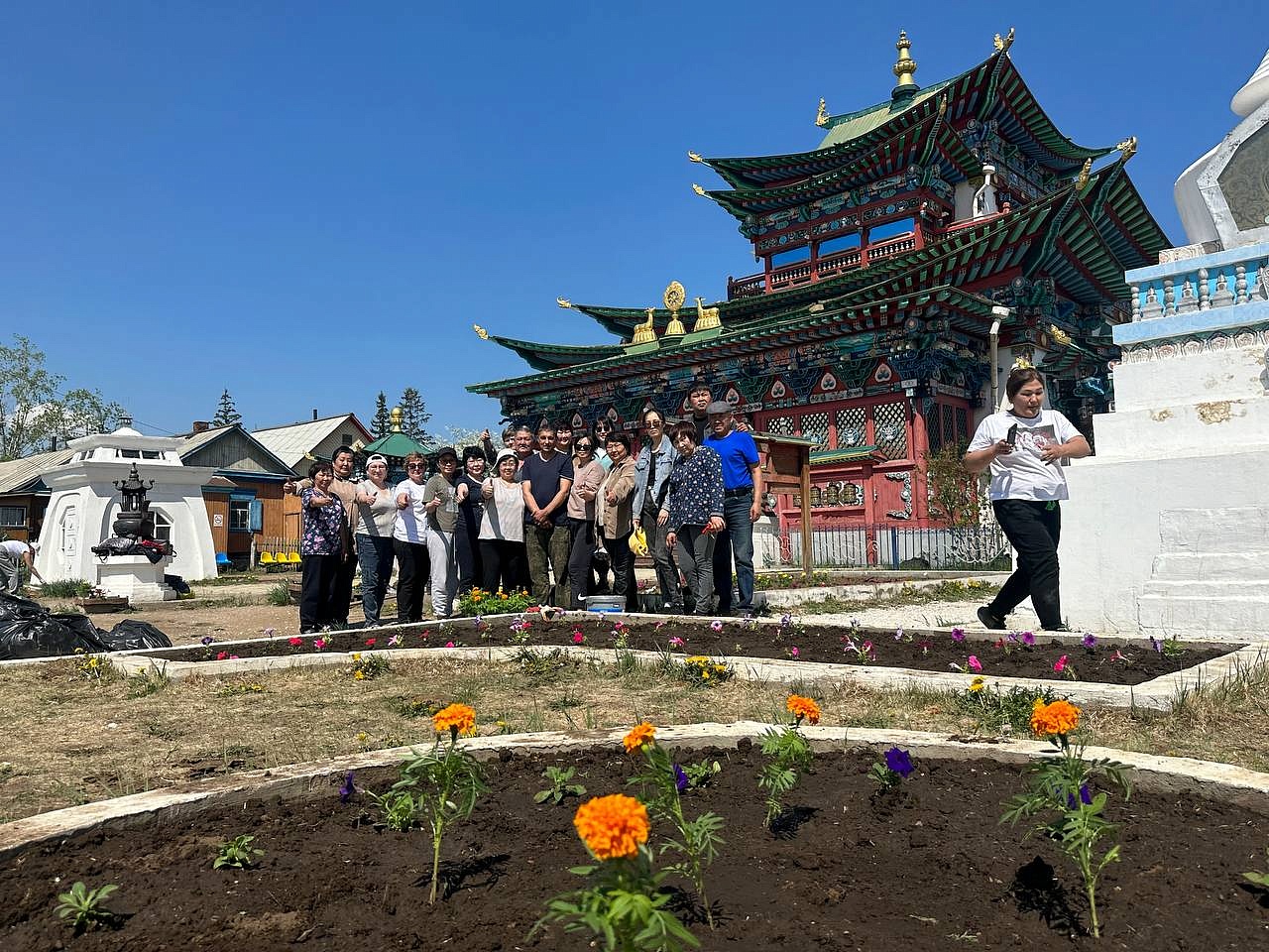 -Заранее весной мы заказываем в питомнике специально для Иволгинского дацана цветы, и приезжаем в дацан всем Управлением «Буркоопсоюза» вместе со своими предприятиями: Центральным рыноком, Торгово-Экономическим техникумом, ООО «Горкоопторг». Наш бухгалтер разрабатывает композицию: какие цветы должны быть на клумбах, какого цвета и сорта. Мы привозим более пятисот саженцев, - рассказала председатель Совета «Буркоопсоюза» Долгор Норбоева. - Отдельно хочу отметить, что совершить благое дело и приехать в Иволгинский дацан хотят все без исключения сотрудники, чему я всегда очень рада.