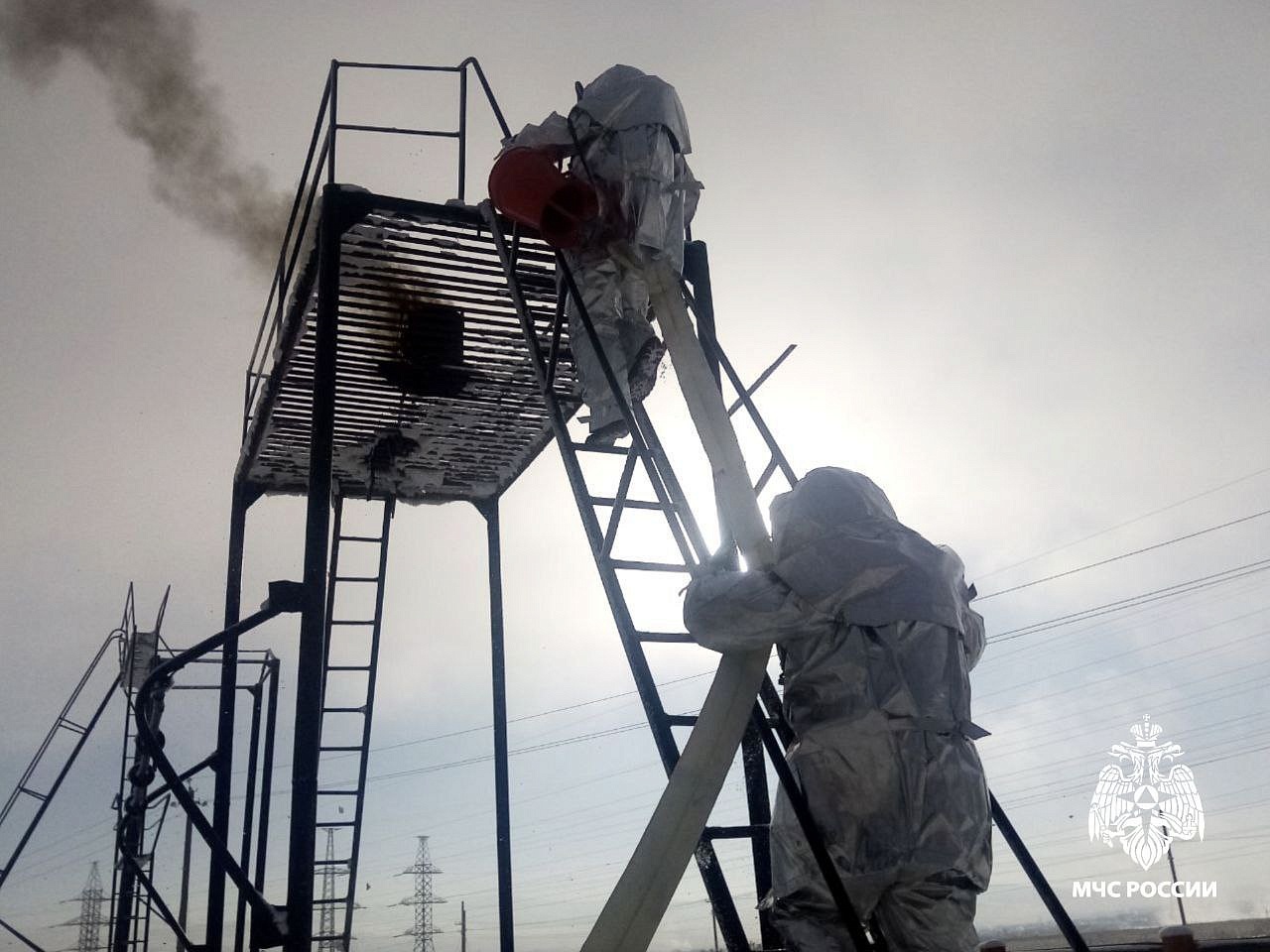 Тренировка проходила в условиях, максимально приближенных к реальным - на огневой полосе и в непригодной для дыхания среде.
