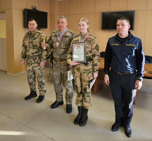 Команда Управления Росгвардии по Республике Бурятия заняла 2 общекомандное место. В личном первенстве в упражнении «Пистолет боевой № 2» (20 выстрелов) 1 место заняла сотрудница СОБР капитан полиции Анастасия К., второе место сотрудница ОМОН «Кречет» старший прапорщик полиции Анастасия З., третье место у военнослужащей Управления ефрейтора Ирины Сычевой.