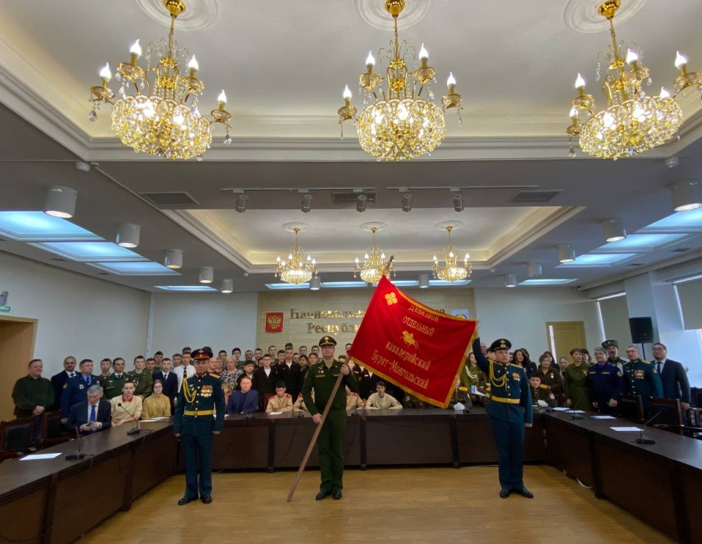 Сегодня в рамках социально-ориентированного проекта, посвященного увековечиванию памяти воинов, в Национальной библиотеке Бурятии состоялся круглый стол по итогам поисковой работы в 2022 году. Во второй части мероприятия прошла торжественная передача копии Боевого знамени Бурятского Кавалерийского дивизиона 5 Танковой бригаде на вечное хранение.