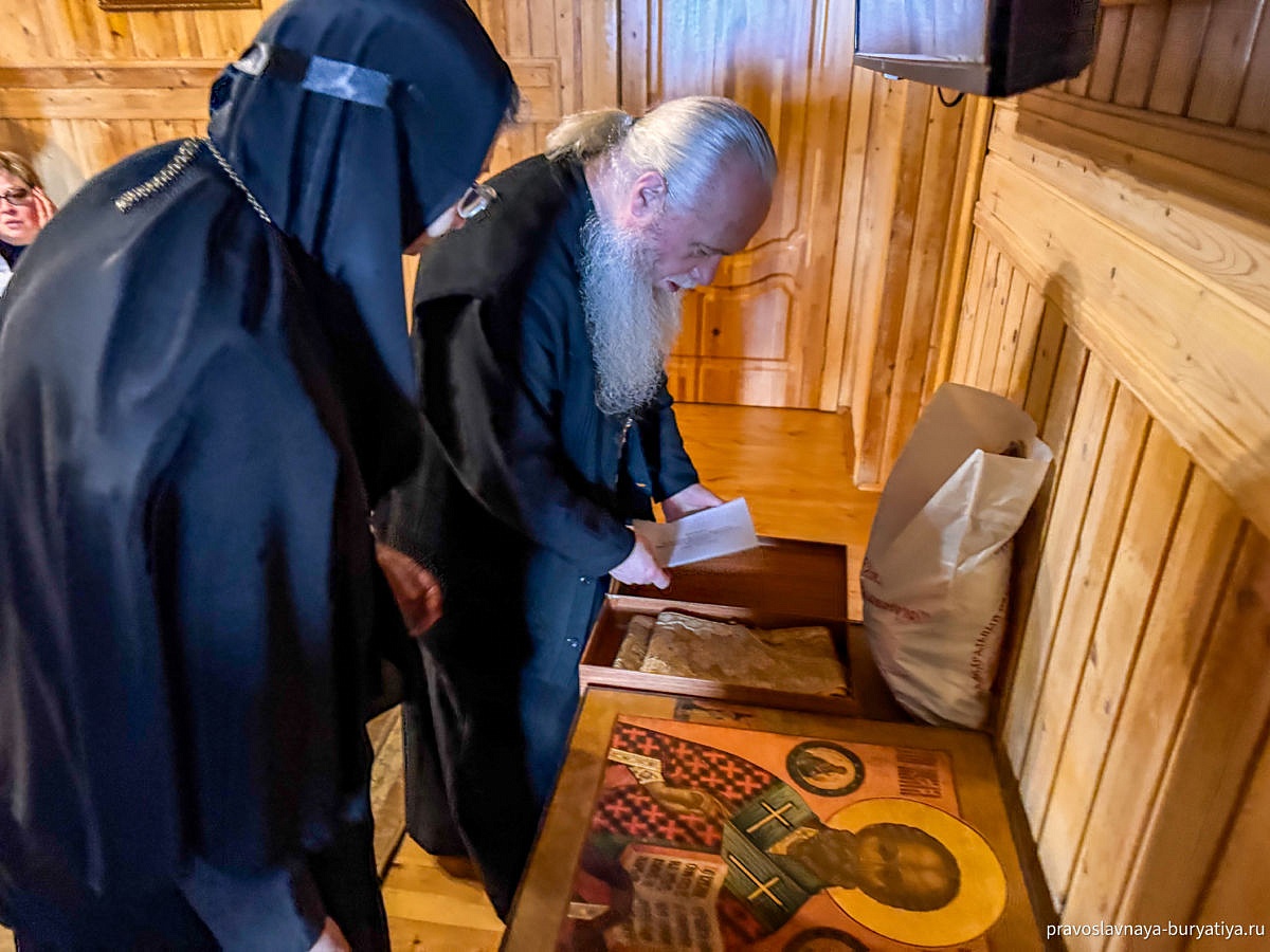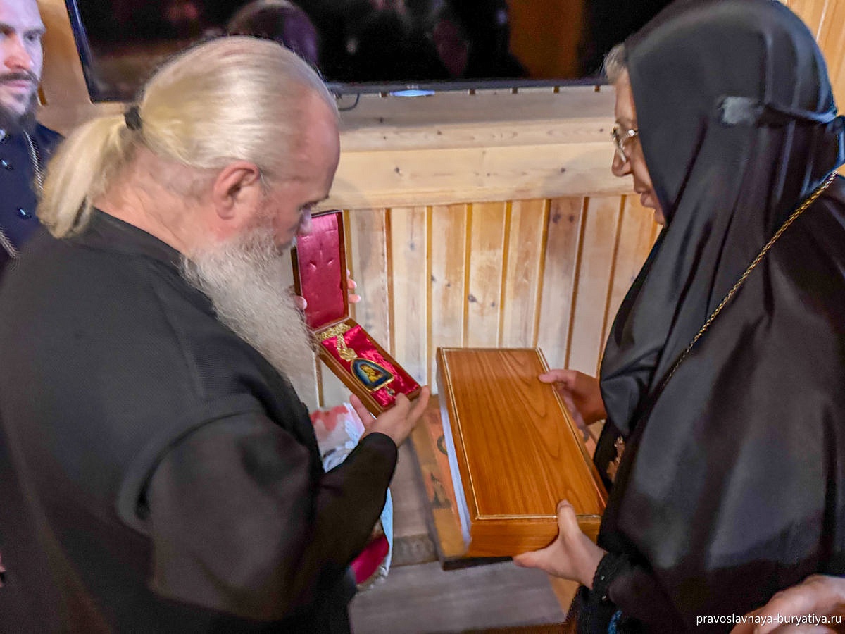 «Владыкой были переданы в дар Сретенскому женскому монастырю предметы старины, которые в будущем будут размещены в музее при обители», - сообщили в пресс-службе Улан-Удэнской и Бурятской епархии. – «Также митрополитом Иосифом были переданы в дар монастырю епитрахиль из облачения Святителя Иннокентия (Вениаминова) Митрополита Московского и Коломенского, старинные рушники с ручной вышивкой, старинные покровцы и воздухи вышитые по особой технологии — вышивка по карте, а так же панагию, которая принадлежала Патриарху Московскому и всея Руси Пимену».
